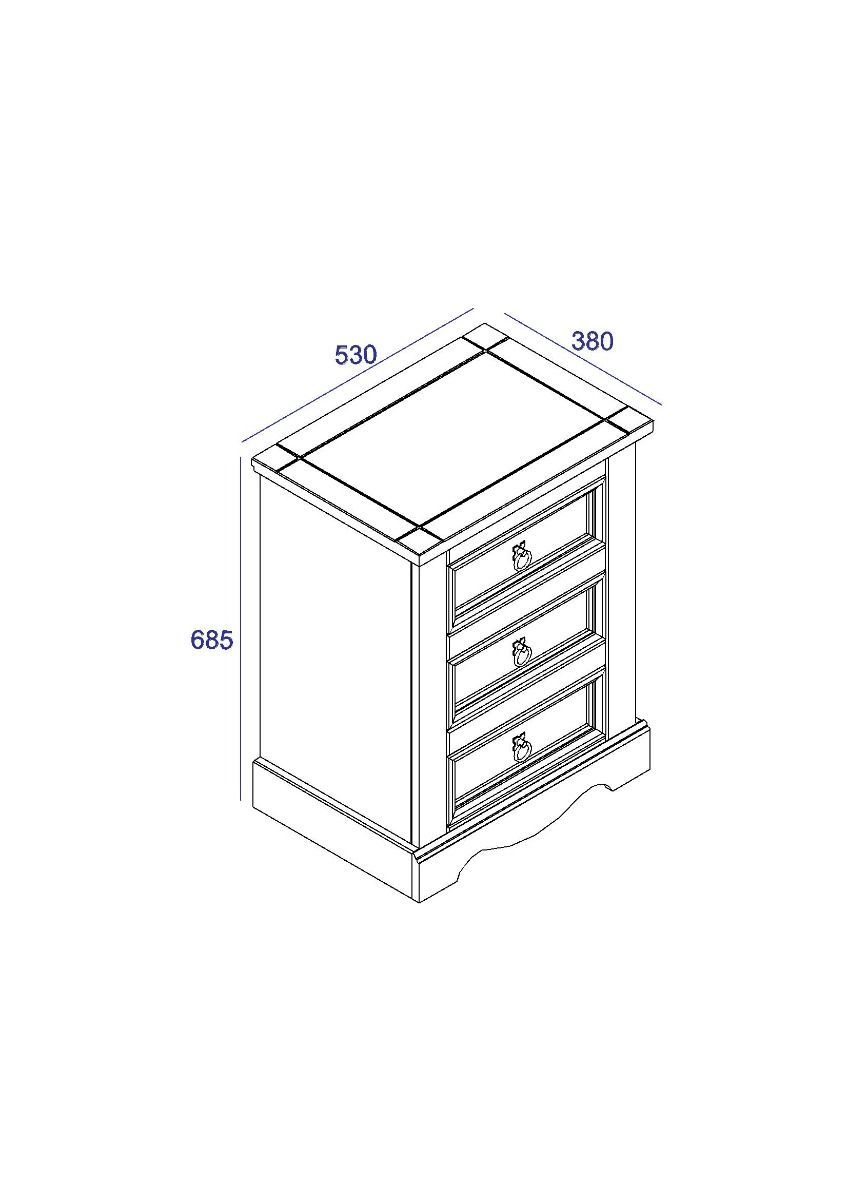 Bedside Table - CORONA 3 Drawer Nightstand Waxed Pine 53cm