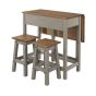 The Corona Drop-Leaf Dining Table Set is made from solid pine timber and is hand polished with a waxed finish that is both fashionable and hard wearing. The Corona waxed pine Drop-Leaf Dining table set is a uniquely constructed, solid piece of furniture with 2 matching dining stools. The tabletop can easily be folded away when not in use and provides a convenient space saving solution. The Dining Table Set is delivered flat packed for an easy self assembly.