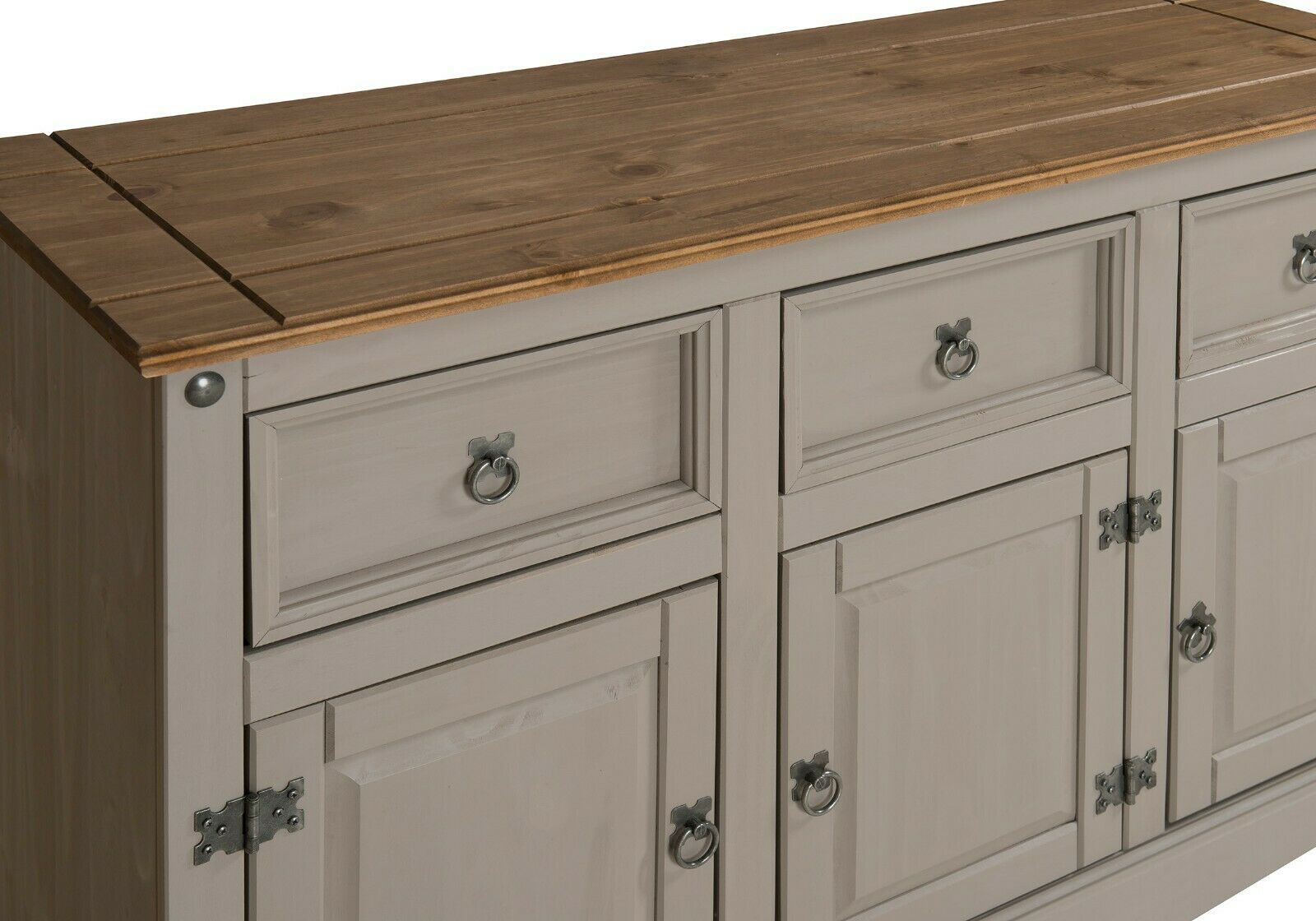 The Corona grey range offers a beautiful modern twist on a classic design while retaining all the characteristics that Corona is known and loved for. The Inset grooved top is waxed to enrich the natural look of the pine while the subtle grey wash body allows the natural grains and textures of the wood to show through. The range is expertly crafted from solid pine and hand waxed to protect, preserve as well as enhance the grain. It offers outstanding value for money that would be a welcome addition to any home.