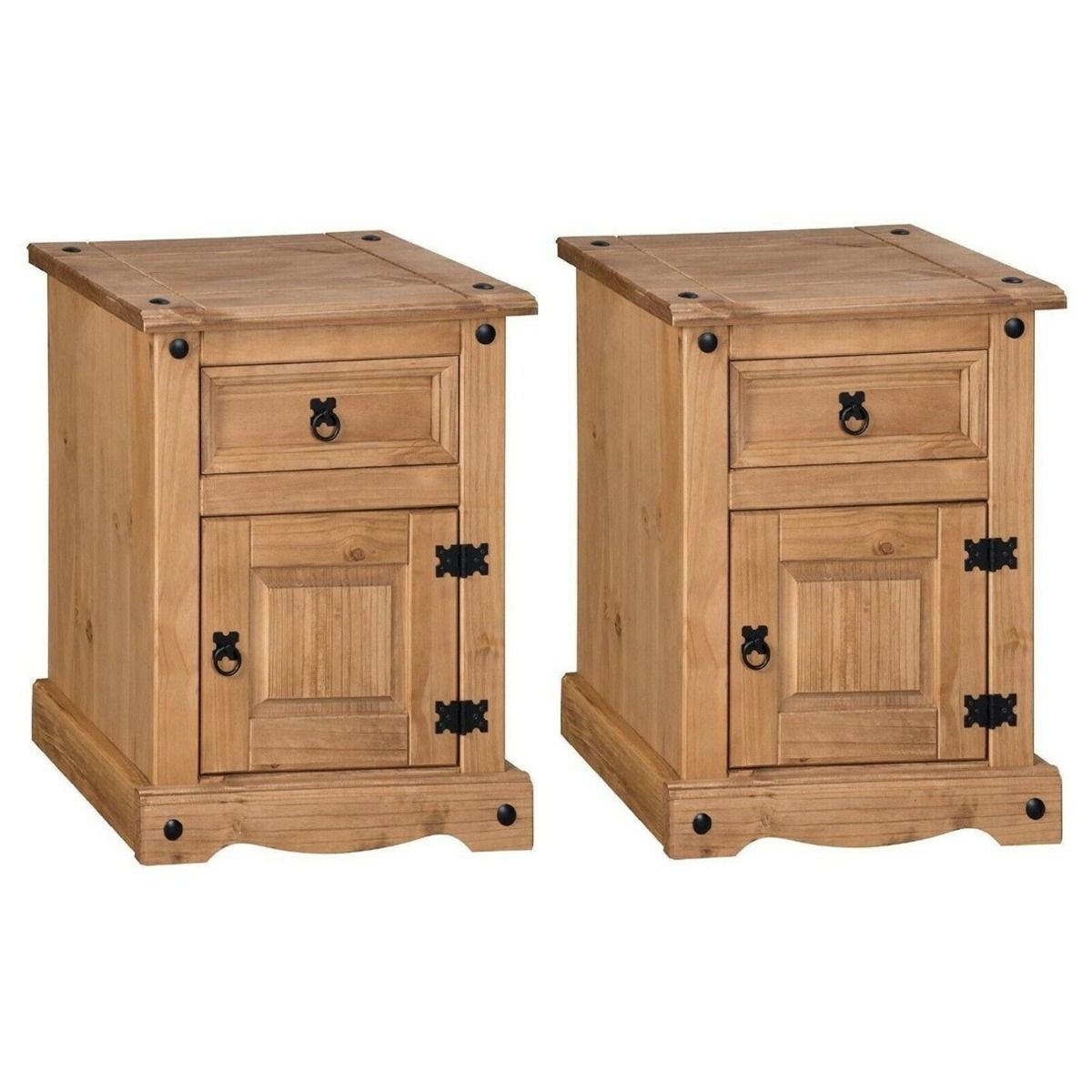 Bedside Table - CORONA 2 Piece 1 Drawer 1 Door Nightstand Antique Wax 45cm