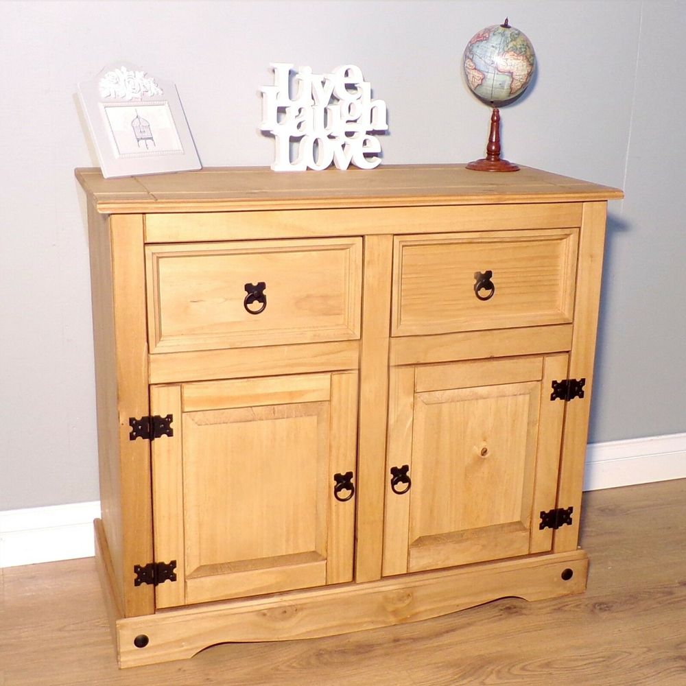 The Corona 2 door 2 drawer sideboard will look great in any living room with its old county feel. The Corona range is solid pine and comes with a waxed finish giving the range a distressed rustic look.