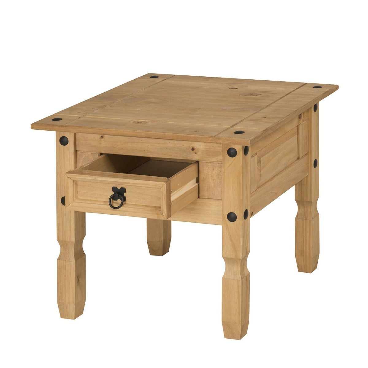 Corona Solid Pine Table Lamp With 1 Drawer - Mexican Style