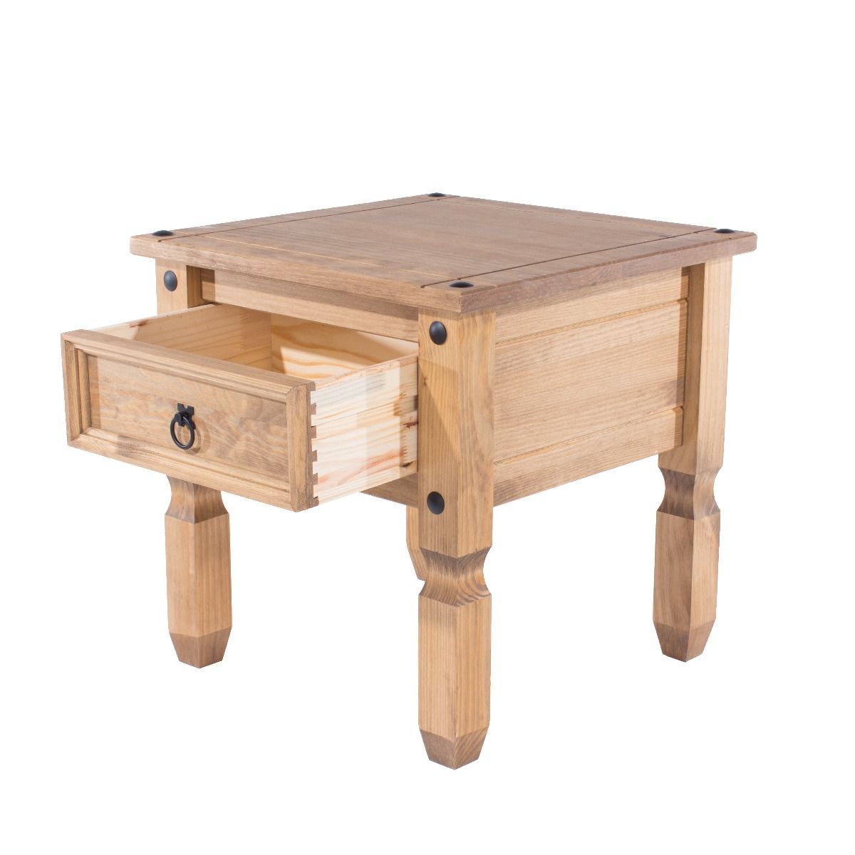 The Corona Pine Lamp Table has a lovely design due to the fantastic pine selected to produce this piece of furniture. This traditional finished table has the medium grade sanding lines intact which create the unique finish, the pine has a dense grain which has been sealed with a wax coating that stops damage appearing from small bumps and scratches. Supplied flat packed this lamp table requires easy self assembly and comes with a fittings pack.