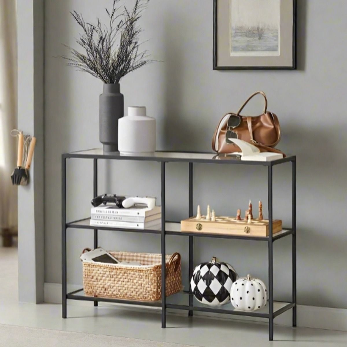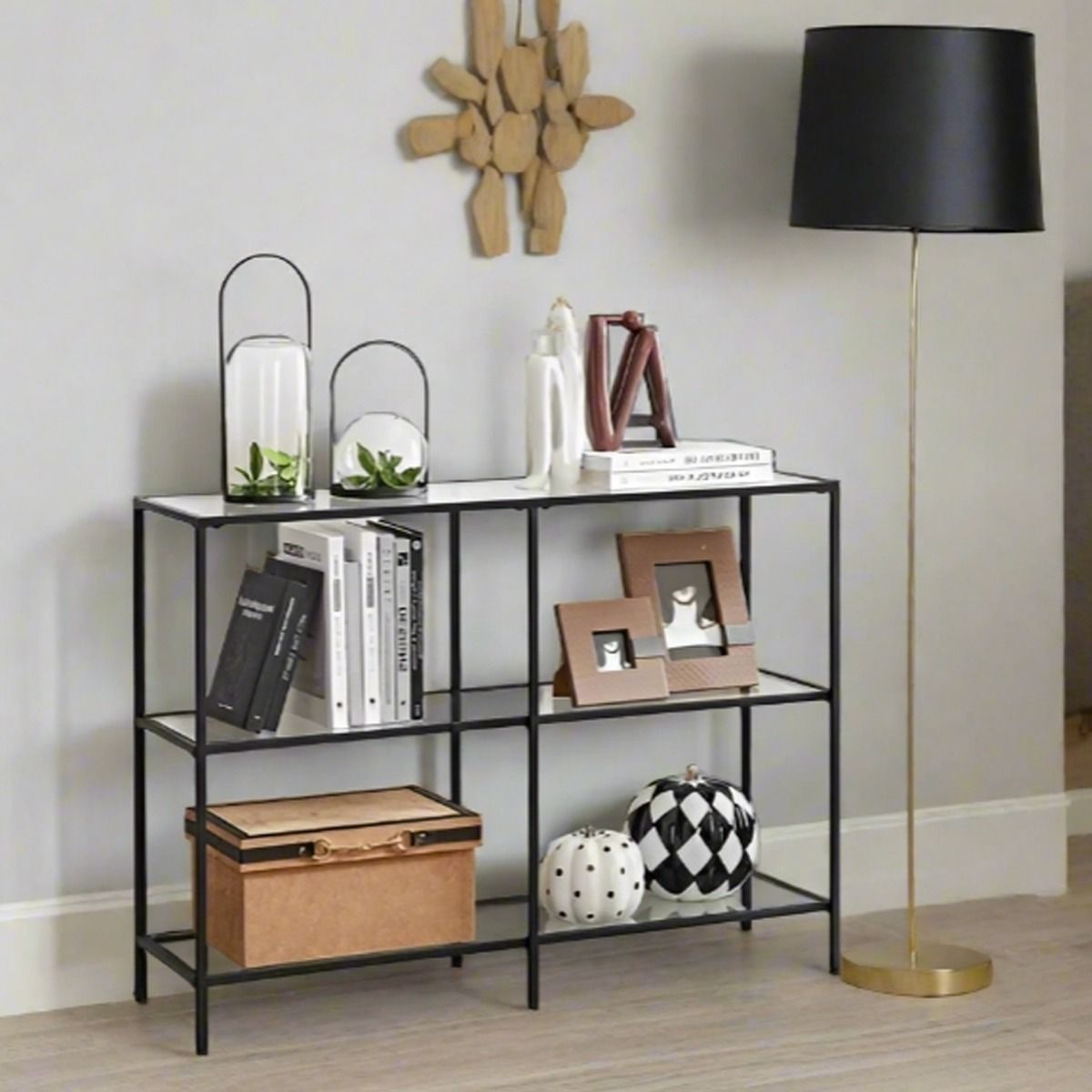CORTHANE Console Table Modern 3-Tier Table with Tempered Glass Shelves and Black Steel Frame - Black