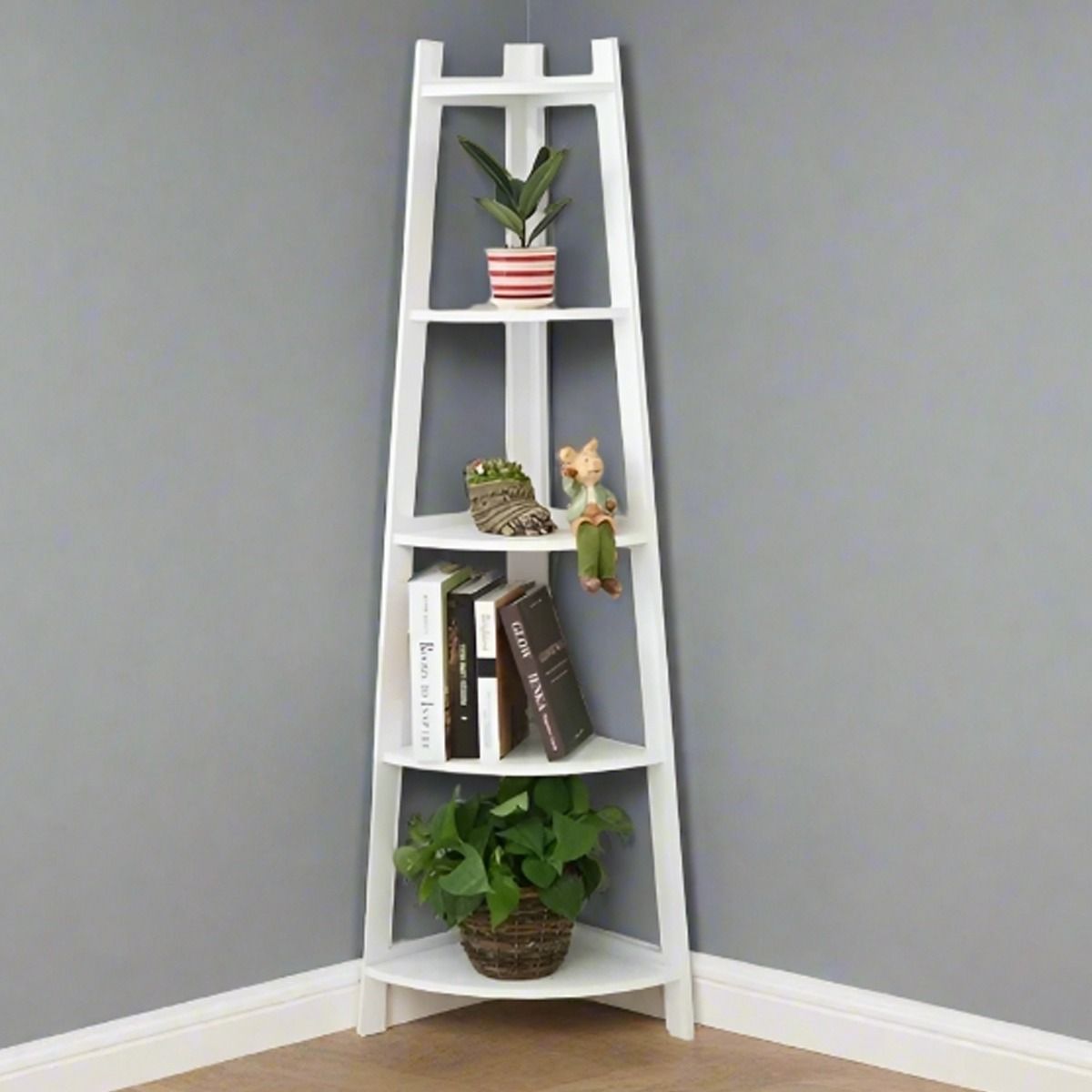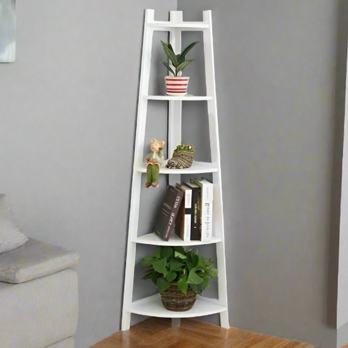 CORTHANE Corner Shelf 5-Tier White Ladder Display Stand for Plants and Home Décor - White