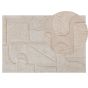 This abstract area rug is an interesting accent for most rooms. Its fluffy natural cotton pile is arranged into shapes of different kinds, creating a mesmerizing composition. It is a great addition to living rooms and bedroom, where it will protect the floor and provide a soft layer for your feet. Details: Color: Beige. Main material: Cotton. Material Composition: 100% Cotton Weight: 4 Assembly: Does Not Require Assembly