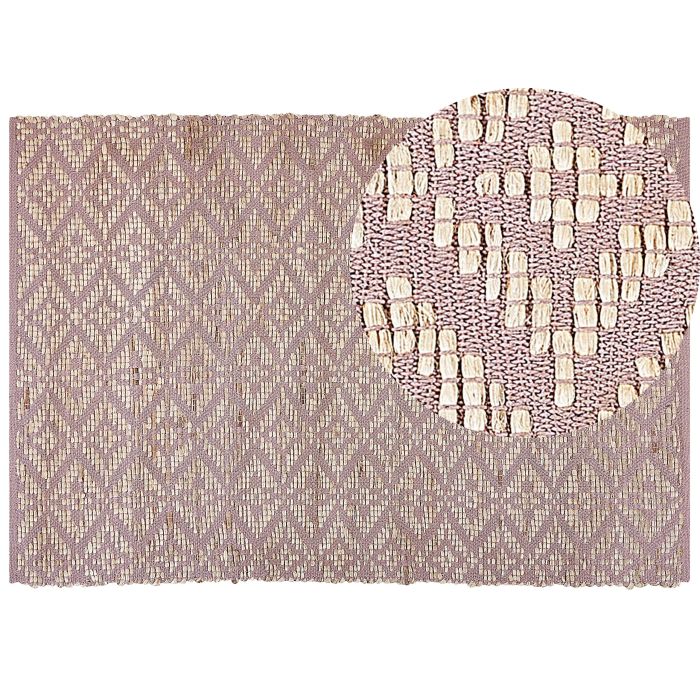 Add a special character to your interior design with this unique rug that is sure to attract everyone's attention. The geometric pattern made of jute has been highlighted with a cotton thread in a pink shade, which creates an interesting visual effect. The subdued colours of this accessory make it a great match for many interior styles. Details: Color: Pink, Beige. Main material: Cotton. Additional material: Jute. Material Composition: 70% Cotton, 30% Jute Weight: 9.4 Assembly: Does Not Require Assembly