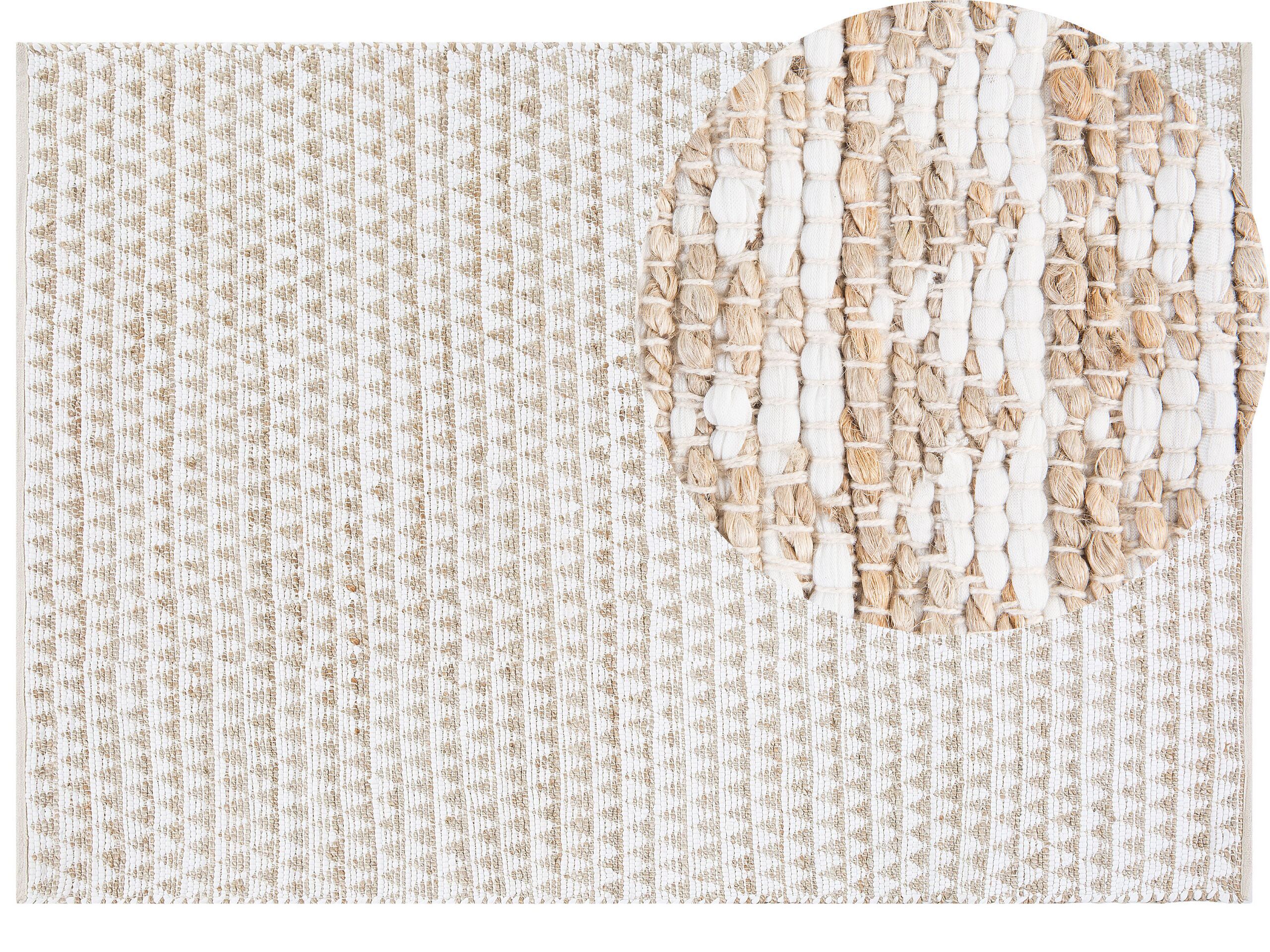 This area rug features a stunning geometrical pattern and is set to become a new accent piece in your home interiors. It is crafted from top-grade natural fibres including cotton and jute to achieve a sturdy yet delightfully comfortable surface. With a stylish geometrical pattern and effortless way of maintenance, this rug is the best choice for minimal Scandinavian style-inspired living room, bedroom or dining room. Details: Color: Beige. Main material: Cotton. Additional material: Jute. Weight: 7 Assembly: Does Not Require Assembly