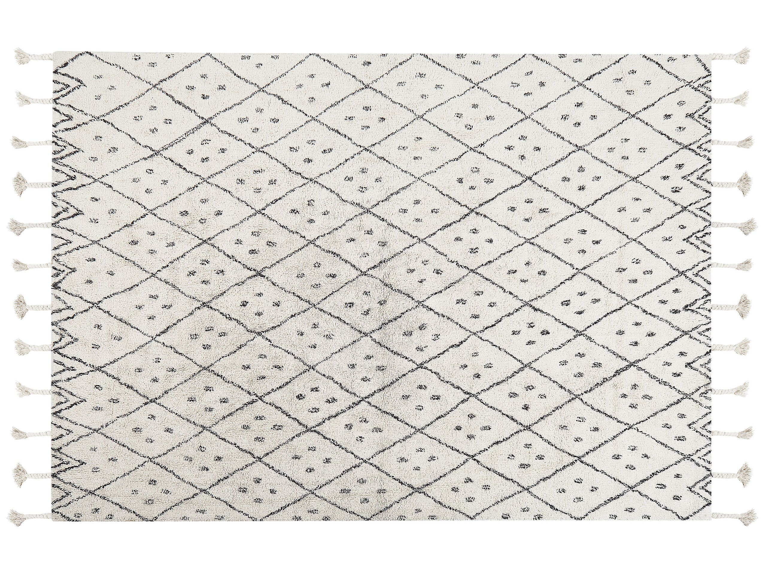 Add a cosy touch to the room of your choice and complete its look with a minimalist area rug. The piece comes with a simple geometric pattern in neutral colours that will nicely fit with various interior designs, introducing a warm and snug atmosphere. Hand-tufted from high-quality cotton, this product will please the eye for years to come. Details: Color: White, Black. Main material: Cotton. Material Composition: 100% Cotton Weight: 7.5 Assembly: Does Not Require Assembly