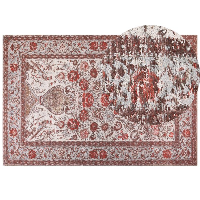 Add a vintage flair to your home with this rectangular, unique area rug. Crafted out of durable cotton and polyester, the piece is very soft and pleasant underfoot, so it will be a perfect addition to any everyday space. As it features a retro pattern, displaying colourful flowers, it can be matched with a variety of traditional interiors. Details: Color: Multicolour, Red, Green, Beige. Main material: Cotton. Additional material: Polyester. Material Composition: 70% Polyester, 30% Cotton Weight: 14.8 Assembly: Does Not Require Assembly