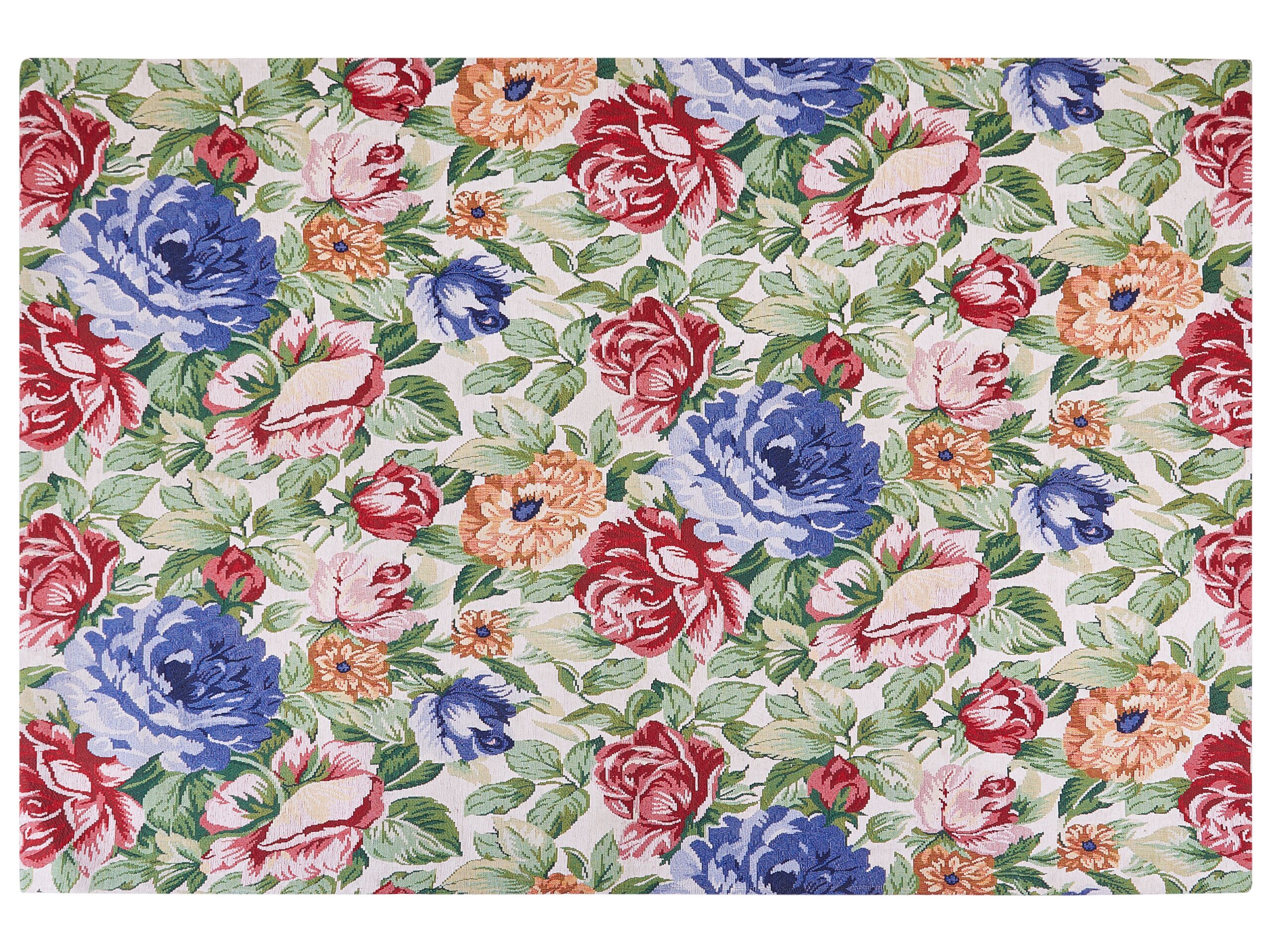 Brighten your interiors with this decorative rug which, thanks to its floral pattern, will be the perfect addition to nature-inspired spaces. Made of cotton, it is soft to the touch, and with proper maintenance, it should last for years. Its shape and colours make it perfect for your bedroom or living room surrounded by various pieces of furniture. It will give a cosy accent to any interior in a traditional or Boho style. Details: Color: Multicolour, Green, Red, Blue. Main material: Cotton. Additional material: Polyester. Material Composition: 70% Cotton, 30% Polyester Weight: 12 Assembly: Does Not Require Assembly