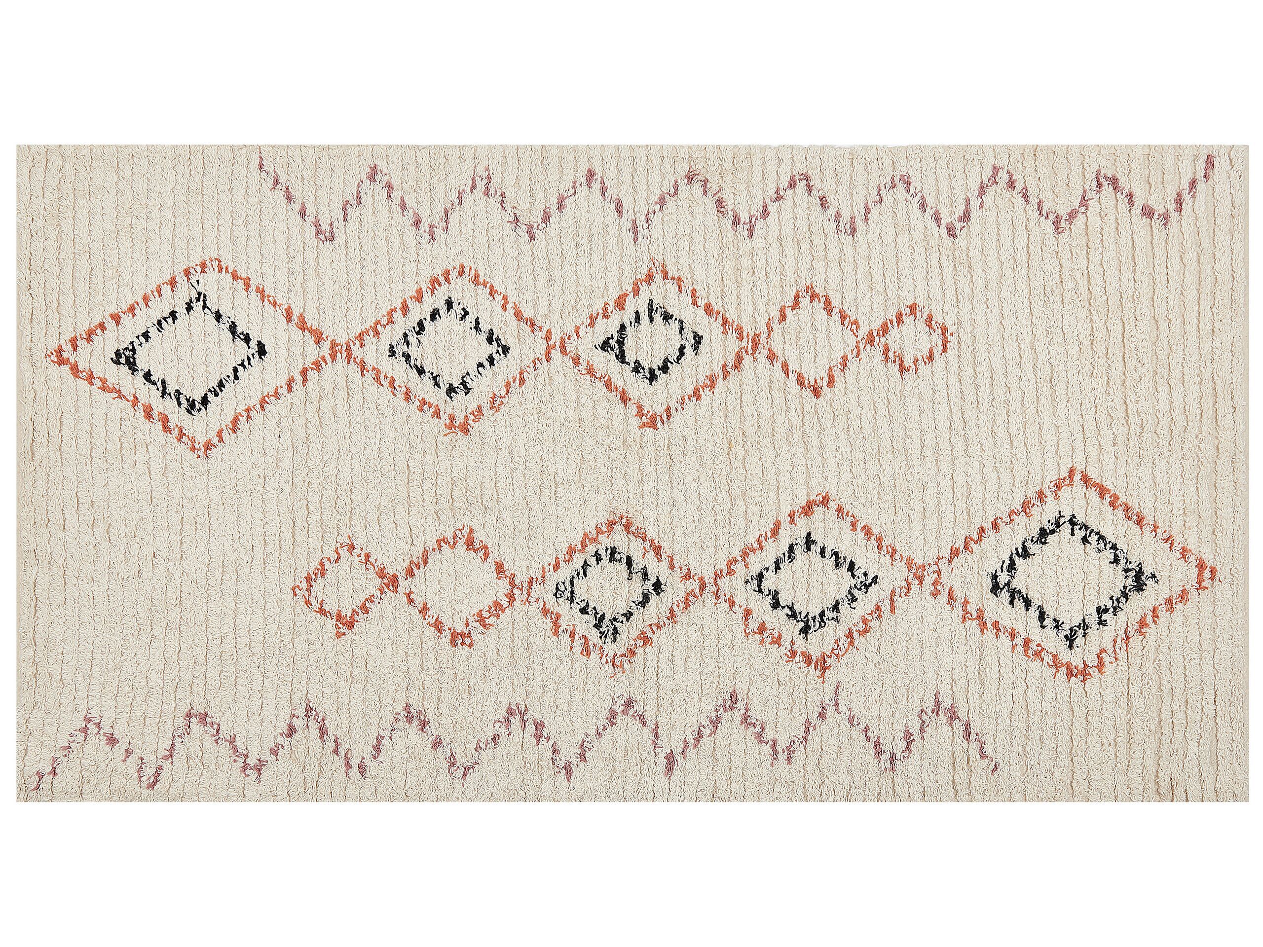 Make your home feel cosy and warm thanks to the high-quality textiles. This hand-tufted with the utmost precision cotton rug will be a nice addition to any living room or bedroom. The subtle geometric pattern highlights the beauty of the piece and makes it work especially well with boho-inspired interiors. Details: Color: Beige, Red, Black. Main material: Cotton. Material Composition: 100% Cotton Weight: 1 Assembly: Does Not Require Assembly