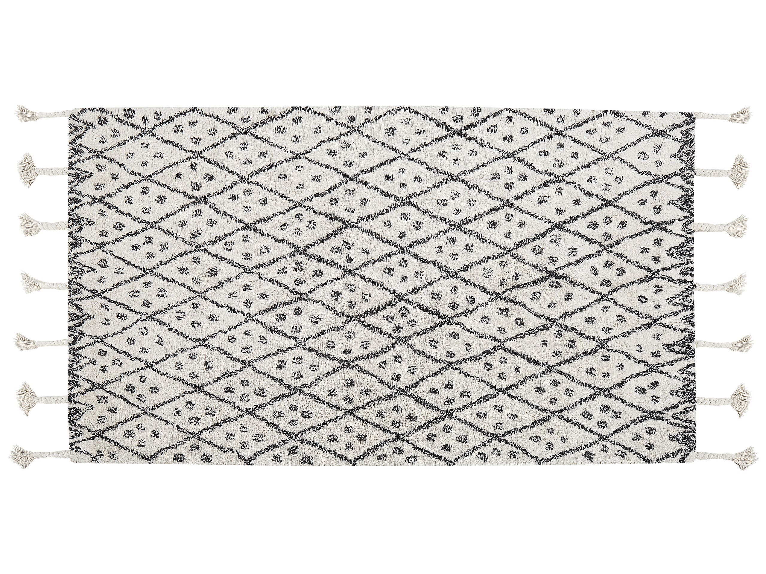 Add a cosy touch to the room of your choice and complete its look with a minimalist area rug. The piece comes with a simple geometric pattern in neutral colours that will nicely fit with various interior designs, introducing a warm and snug atmosphere. Hand-tufted from high-quality cotton, this product will please the eye for years to come. Details: Color: White, Black. Main material: Cotton. Material Composition: 100% Cotton Weight: 2.7 Assembly: Does Not Require Assembly