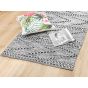 Bring a unique element to your living room with this area rug. Entirely made out of cotton, which makes it very pleasant to touch and provides high durability, allowing the piece to last for years, even if placed in heavy foot-traffic areas. Its geometric pattern is tufted, creating 3D effect with small pieces of yarn sticking out of the otherwise low-pile surface. Trendy colour palette allows it to fit into a variety of styles, from modern to retro Details: Color: Black, White. Main material: Cotton. Material Composition: 100% Cotton Weight: 2 Assembly: Does Not Require Assembly