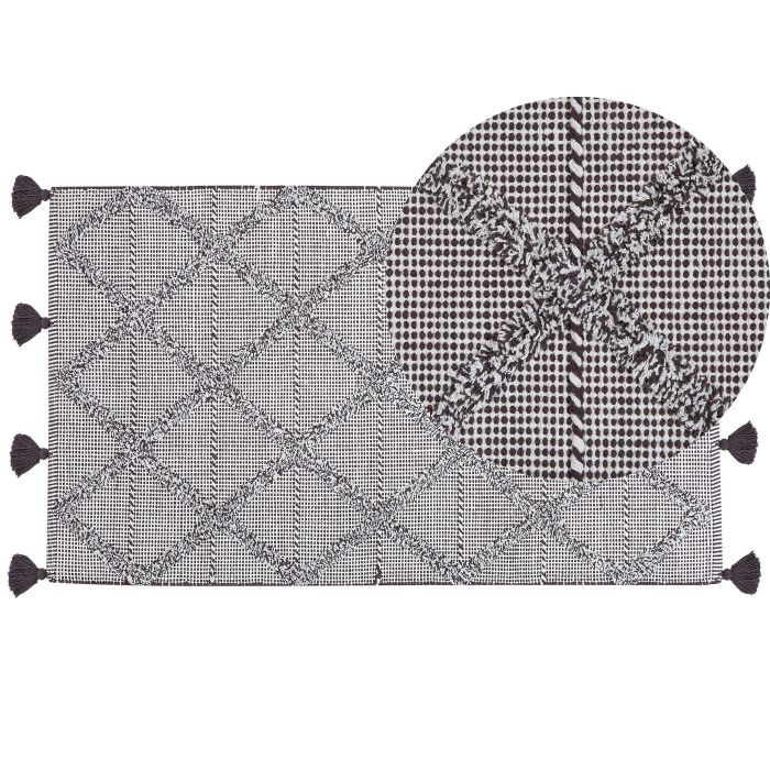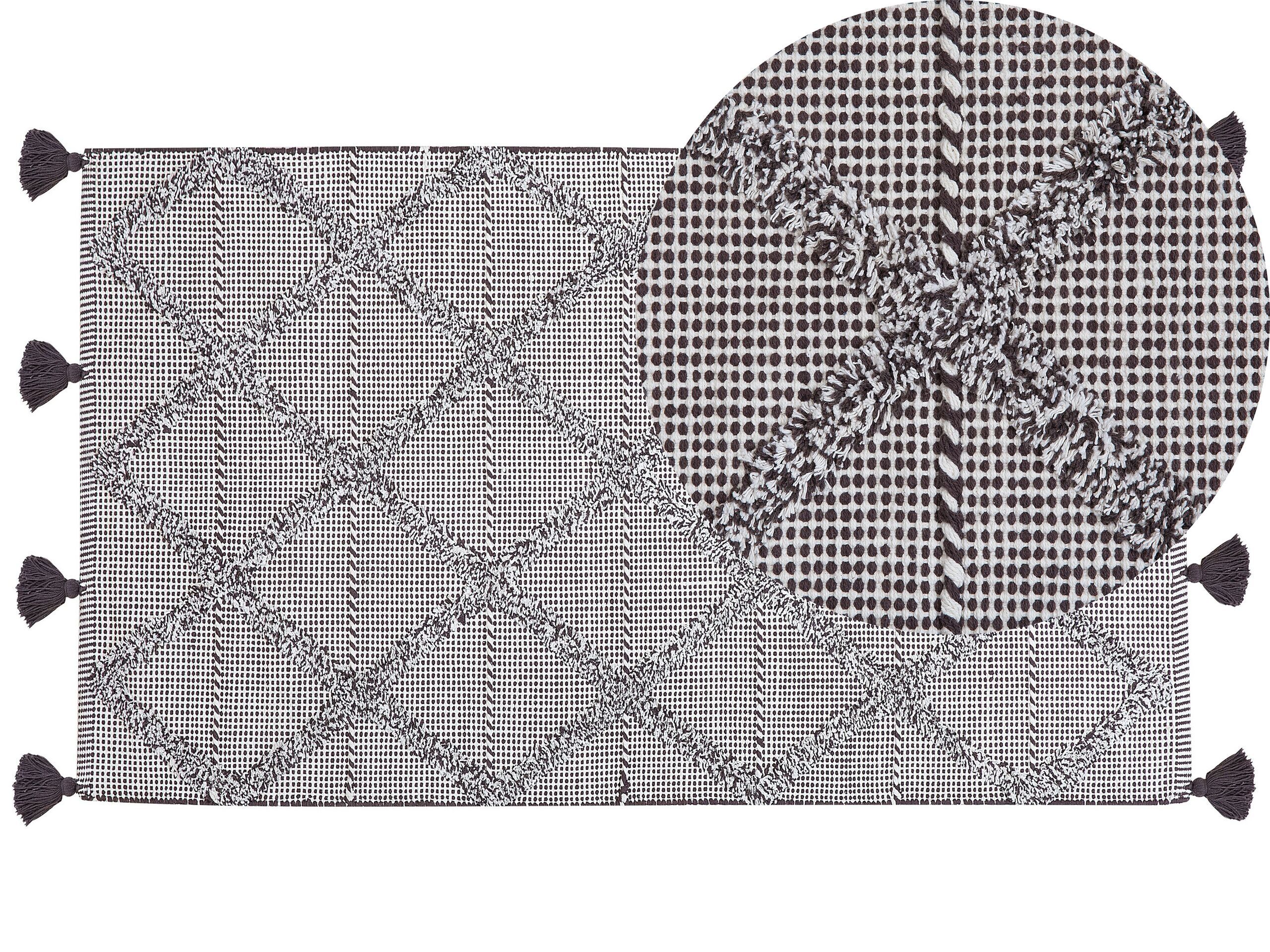 Upgrade the look of your living room or bedroom with this stylish modern rug. Featuring a shaggy surface, extremely pleasant to the touch, this wide rug is durable and long-lasting thanks to its high-quality cotton material. Its unique geometrical pattern is an eye-catcher, while the decorative corner tassels add a refined oriental vibe, perfect for any décor style. Details: Color: Brown. Main material: Cotton. Material Composition: 100% Cotton Weight: 1 Assembly: Does Not Require Assembly