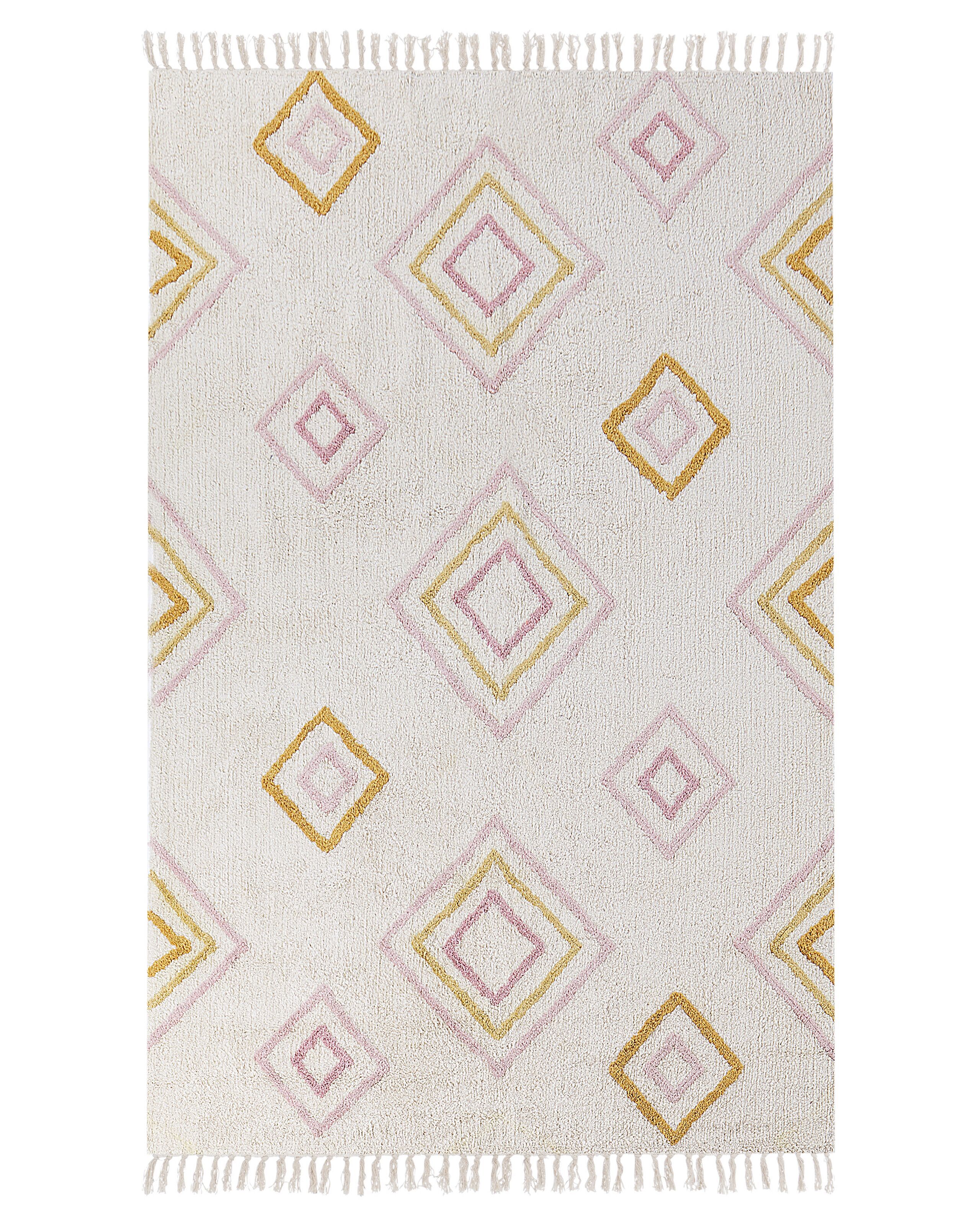 Cotton Area Rug Geometric Pattern 140x200cm Off White