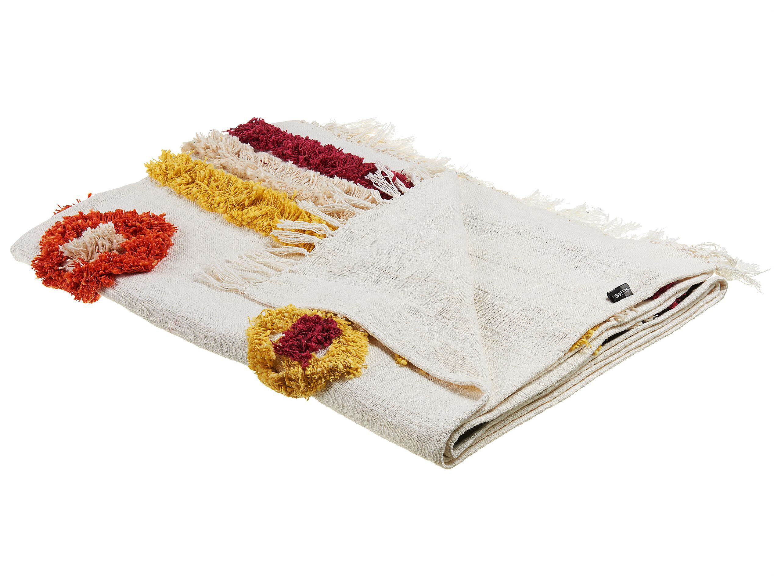 Beautiful and functional, this colourful blanket will bring positive energy to any room decor. Made of cotton, it is durable and pleasant to touch. Cuddle up under it on cool evenings or use as a decoration for a bed, sofa or armchair. Due to hand-embroidered applications, each blanket is unique. Details: Color: Multicolour, Red, Beige, Yellow, Orange. Main material: Cotton. Material Composition: 100% Cotton Assembly: Does Not Require Assembly