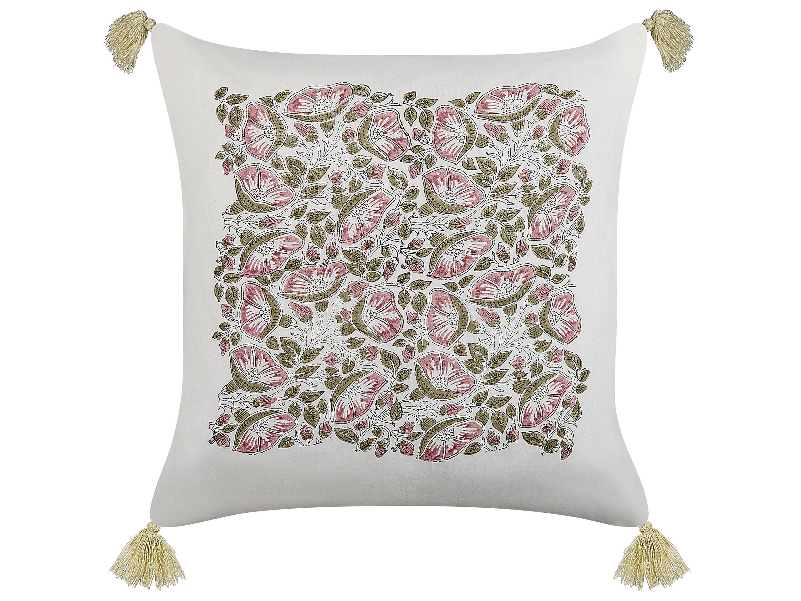 Cotton Cushion Floral Pattern with Tassels 45x45cm Multicolour