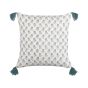Cotton Cushion Floral Pattern with Tassels 45x45cm White and Blue