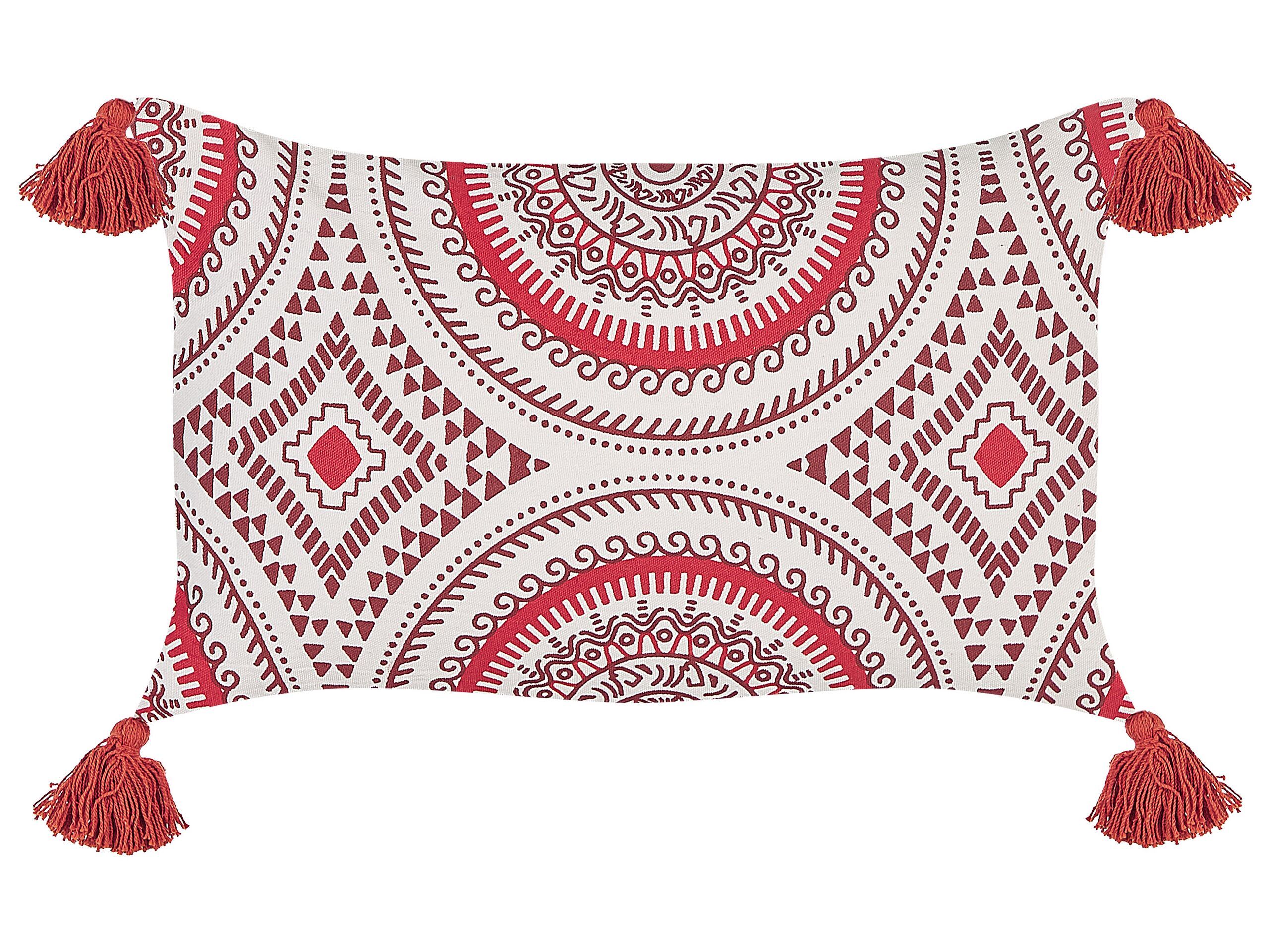 Cotton Cushion Oriental Pattern 30x50cm Red and White