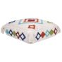 Add a touch of whimsy to your children's room decor with this floor cushion. Handcrafted with care out of cotton, this plush, white square cushion showcases a delightful array of multicoloured diamond shapes, perfect for brightening any room. Each corner is accented with a charming tassel, combining comfort with a dash of playful style. Ideal for a child's bedroom or as a cosy nook accessory, this cushion invites you to sit back and relax in comfort. Details: Color: White, Multicolour. Main material: Cotton. Material Composition: 100% Cotton Weight: 3 Assembly: Does Not Require Assembly Weight Capacity: 75