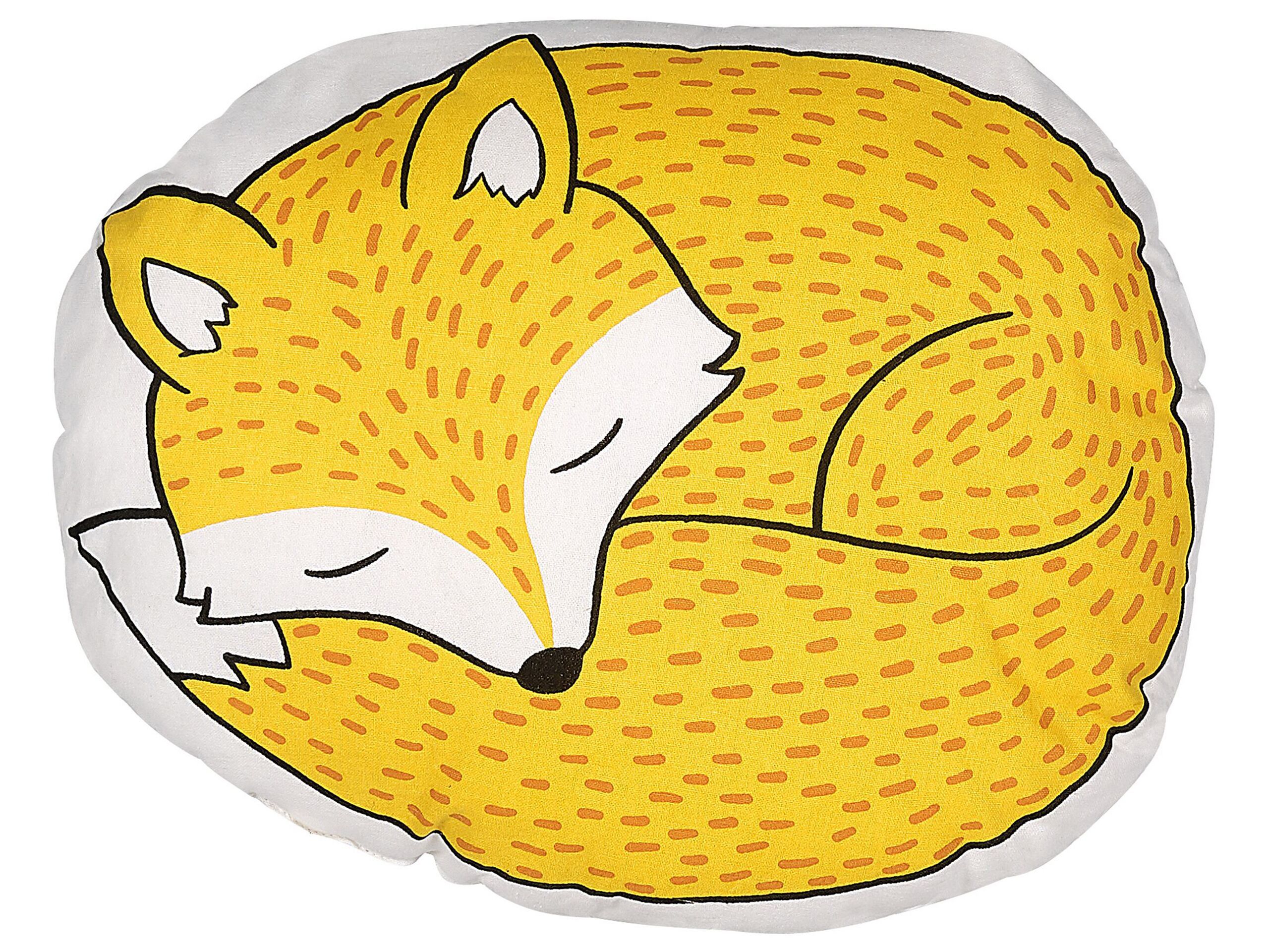 This soft cushion showcasing sleeping fox print is a perfect addition to any nursery or kid’s bedroom. It works well as a pillow and thanks to its plush filling it will make a lovely toy. The animal print will awake children’s imagination and fit perfectly into any toddler's room arrangement. Details: Color: Yellow, White, Black. Main material: Cotton. Material Composition: 100% Cotton Assembly: Does Not Require Assembly