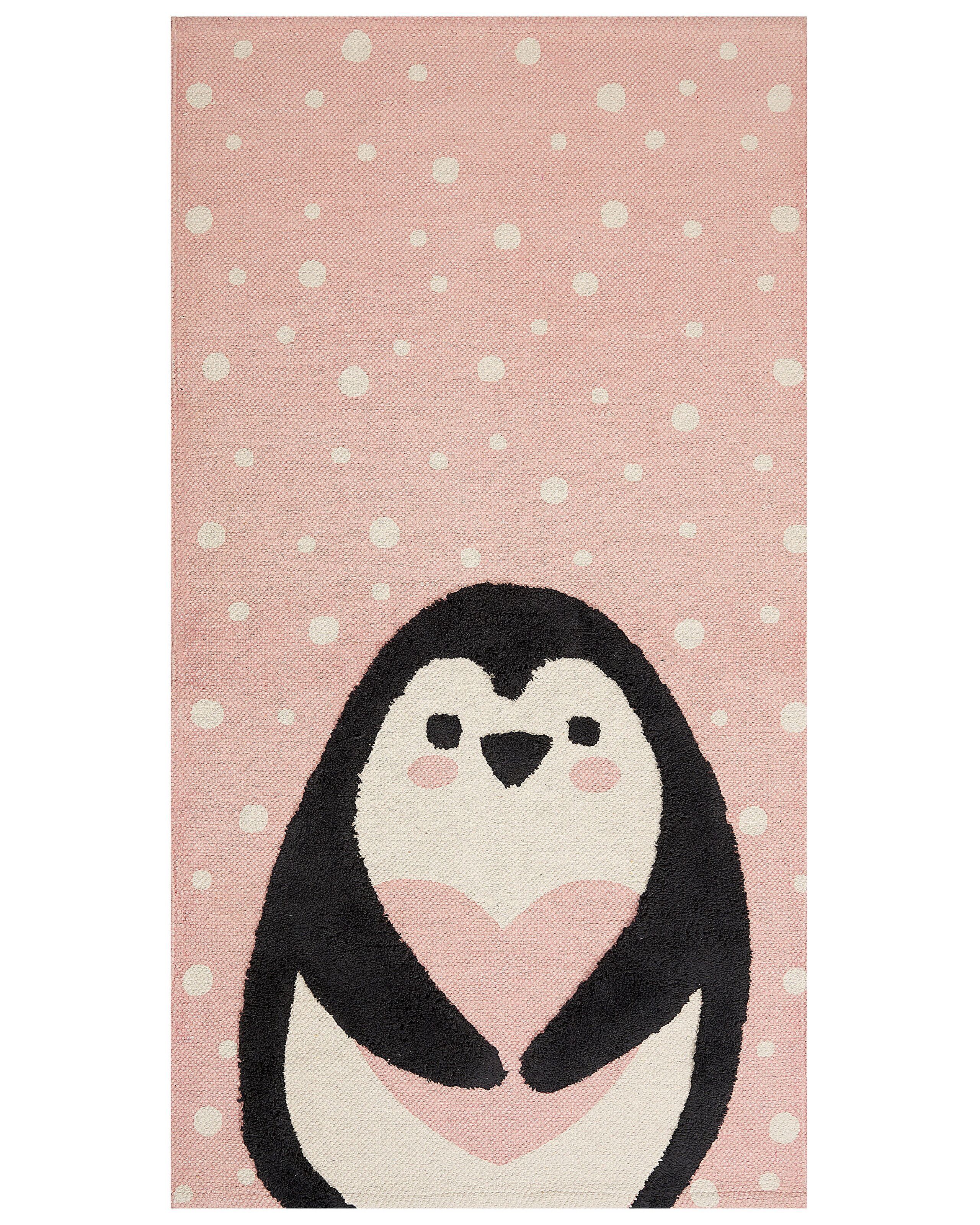 Cotton Kids Rug Penguin Print 80x150cm Pink