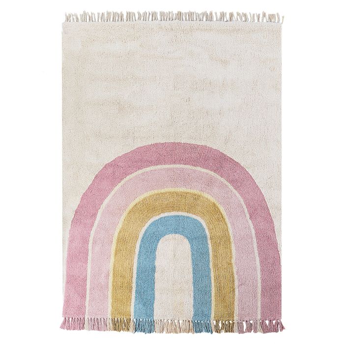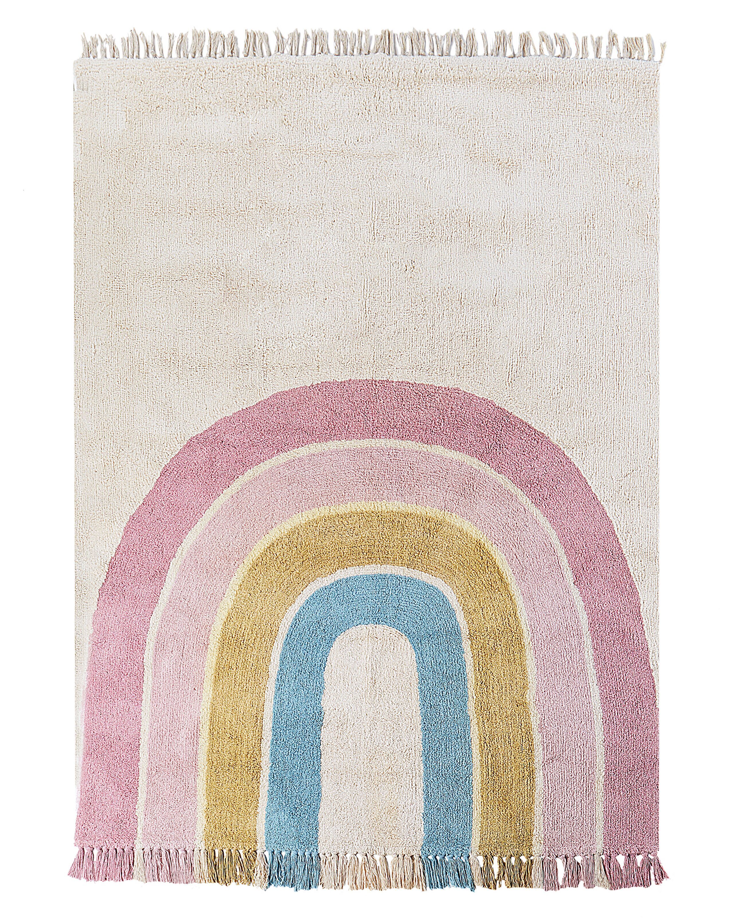 Cotton Kids Rug Rainbow Pattern 140x200cm Beige and Multicolour