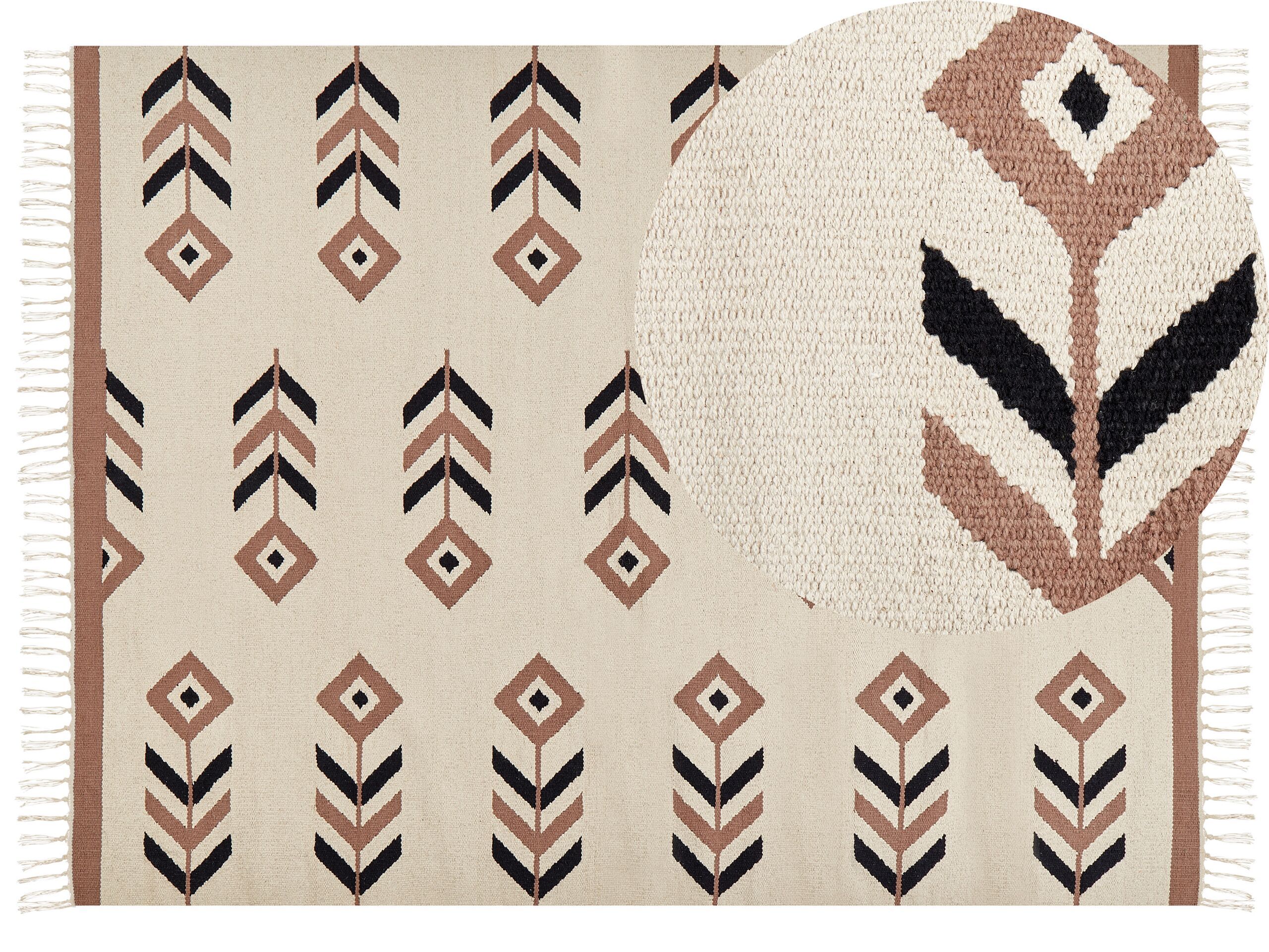 Cotton Kilim Area Rug 160x230cm Beige and Black
