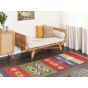 Immerse yourself with captivating colours and tribal vibes with this handwoven rug. Each thread is carefully entwined by skilled artisans, creating a mesmerizing tapestry of patterns that tell tales of ancient traditions. Embrace the vibrant hues that burst forth in harmonious symphony, infusing your space with energy and warmth. And don't worry about spills or mishaps, as this rug is conveniently machine washable, ensuring it stays as fresh and vivid as the day you brought it home. Complete with charming tassels, this kilim rug presents a perfect blend of artistry and functionality, that is bound to become the heart of your home. Details: Color: Multicolour, Red, Blue, Green, Yellow. Main material: Cotton. Material Composition: 100% Cotton Weight: 2.1 Assembly: Does Not Require Assembly