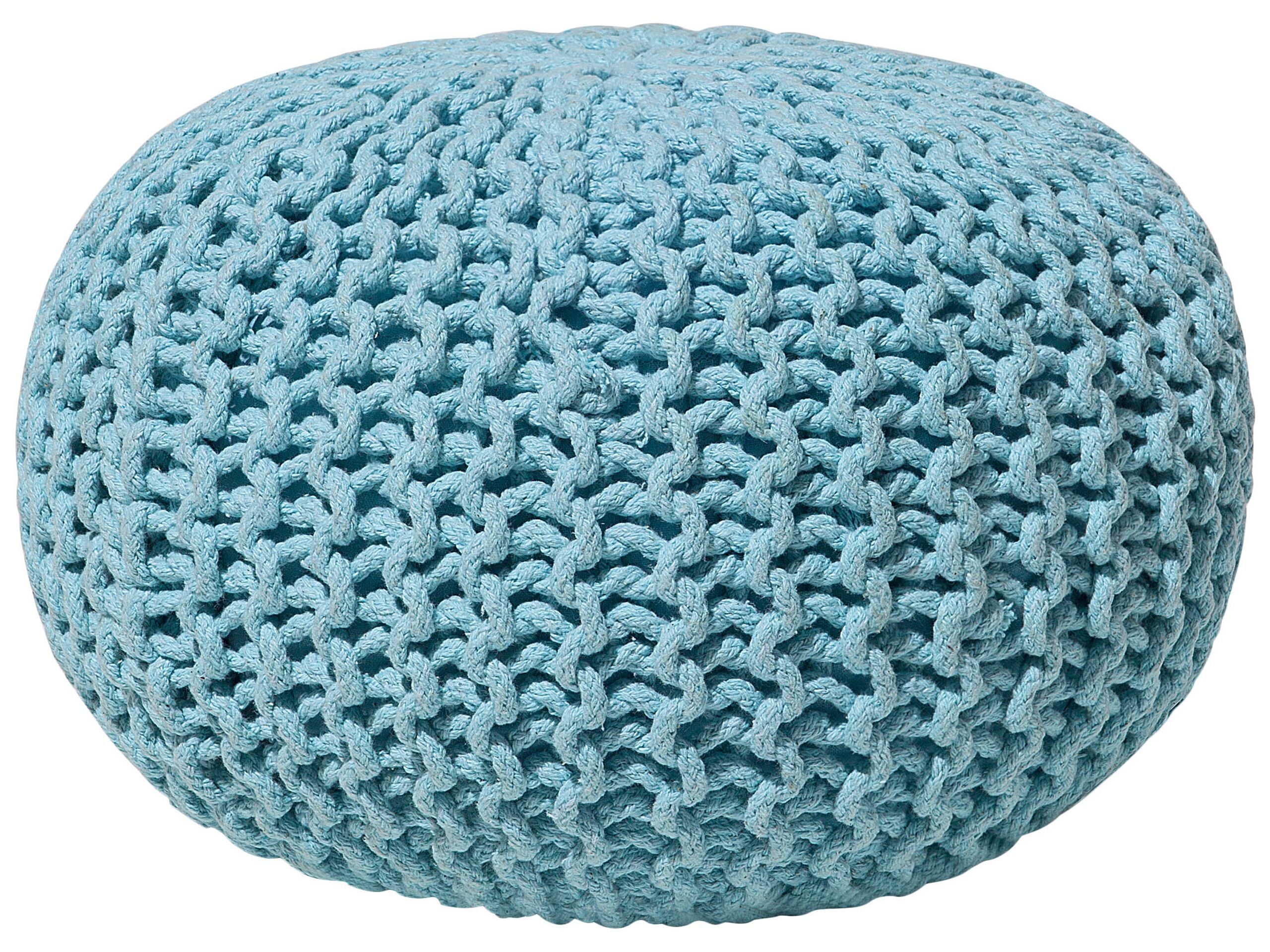 Cotton Knitted Pouffe 40 x 25 cm Light Blue CONRAD