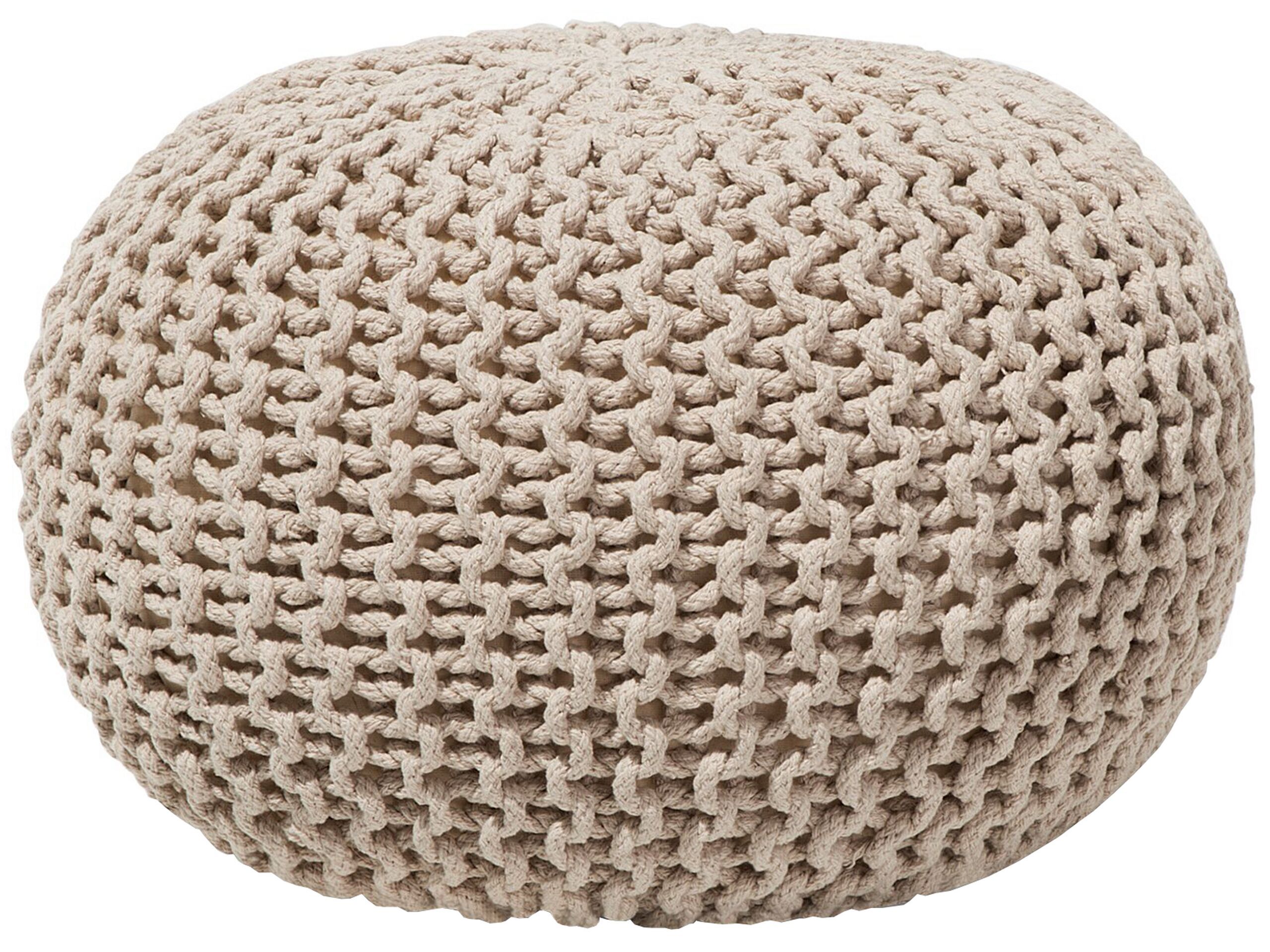 Cotton Knitted Pouffe 50 x 35 cm Beige CONRAD