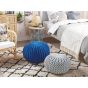 If you are looking for a bright accent to liven up your interior, this adorable knitted round pouffe is a perfect fit. Featuring thick weave in a warm shade of blue and firm, high-quality filling, it can serve as a footstool, a base for a coffee tray or simply as a decorative piece - the possibilities are endless. Get creative with mixing colours and sizes to make an ideal composition for your living space and enjoy its charming modern vibe. Details: Color: Blue. Main material: Cotton. Additional material: EPS Beads, Cotton. Material Composition: 100% Cotton Weight: 4 Assembly: Does Not Require Assembly Weight Capacity: 120