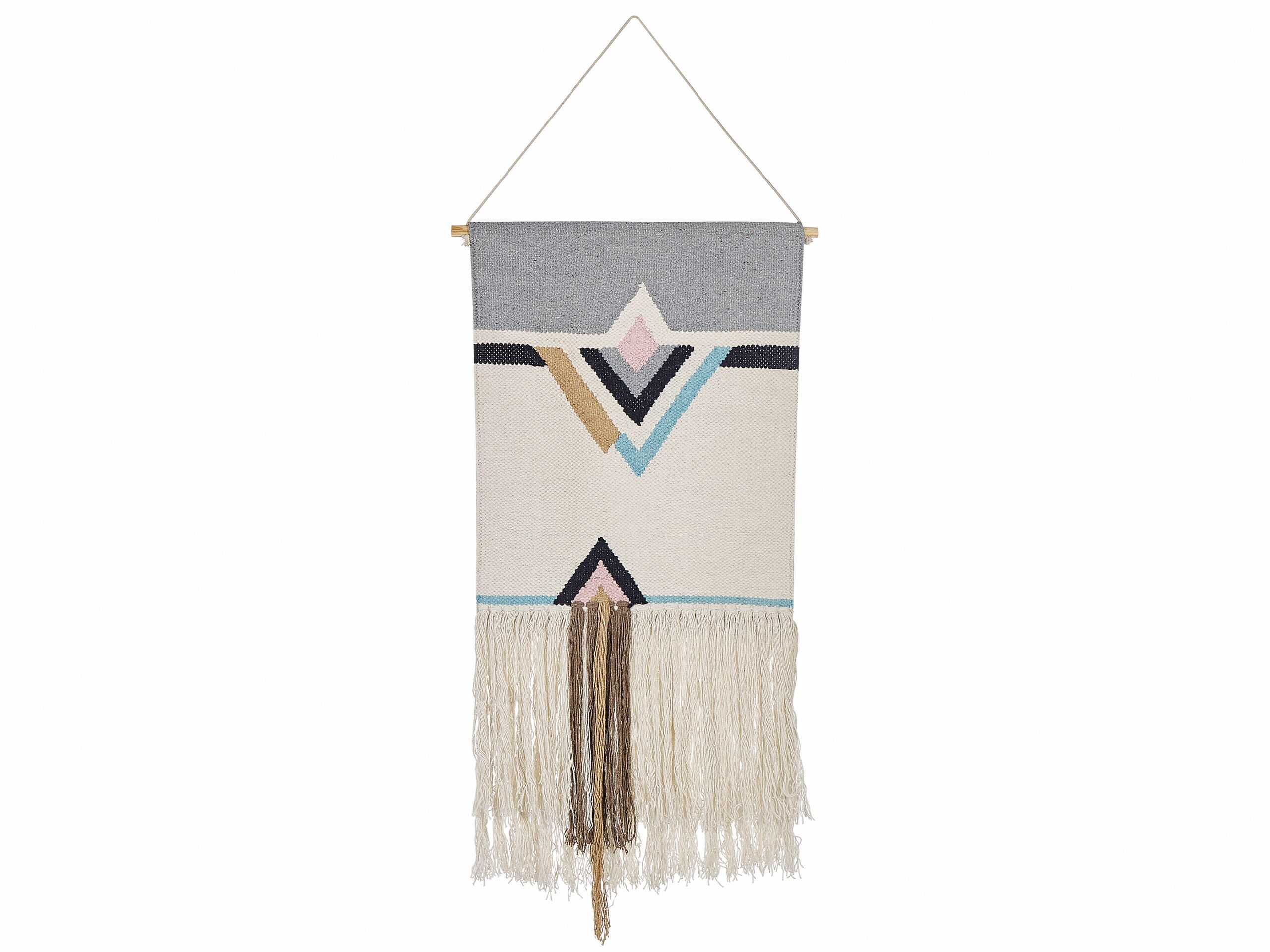 Complete the look of your interior with a cosy-looking wall decoration. The piece is handwoven from cotton fibre for a high-quality look for years to come. Hang it over the couch in your living room or next to your bed in the bedroom to attain a boho feel in any area. Details: Color: Beige, Multicolour. Main material: Cotton. Additional material: Eucalyptus Wood. Weight: 0.6 Assembly: Does Not Require Assembly Wood type: Eucalyptus grandis Wood Origin: China