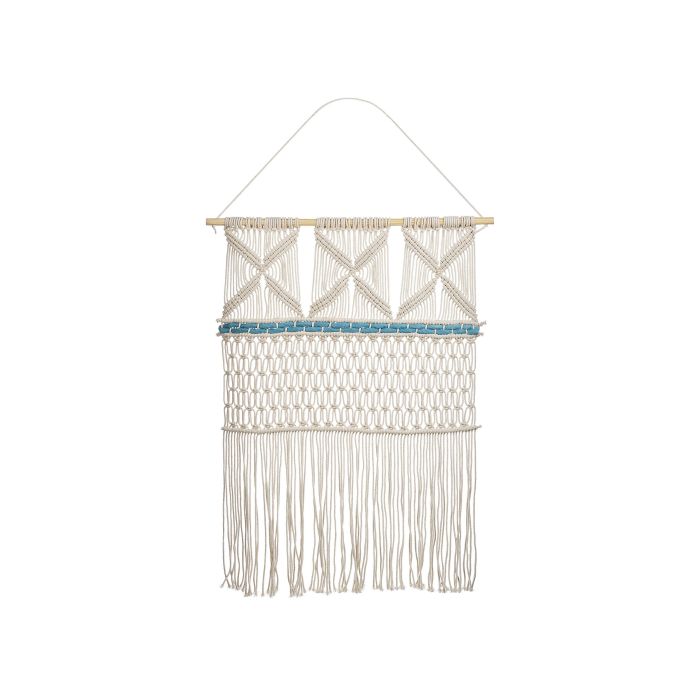 Warm up your interior with this boho-inspired wall decor. Made out of cotton, it is visually pleasing, featuring a beige colour with a dash of blue, creating an eye-catch accessory. Due to its size it can be hanged in almost any space, so you can place it both in your living room and in your hallway. Its fringed bottom brings rustic or country vibes to mind, and it will fit into such styles with ease. Details: Color: Beige, Blue. Main material: Cotton. Additional material: Pine Wood. Weight: 1 Assembly: Does Not Require Assembly