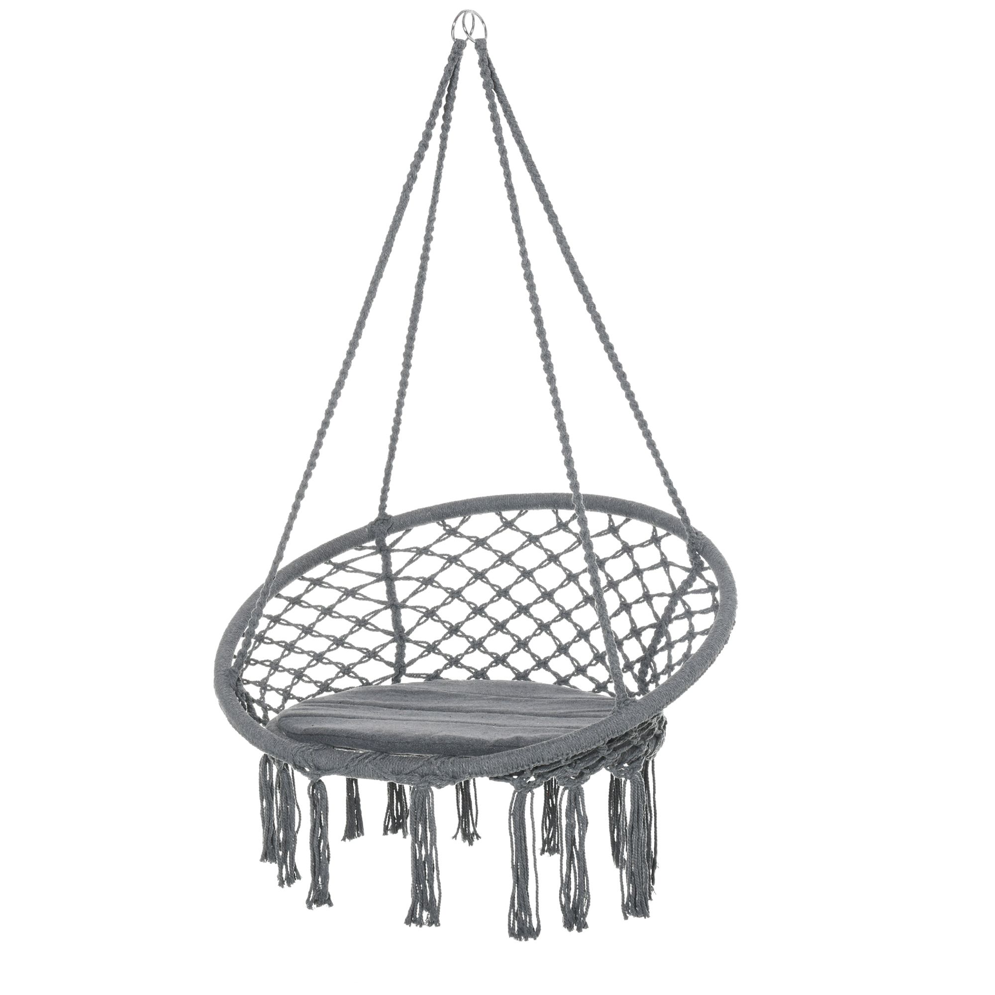 Cotton-Polyester Blend Macrame Hanging Chair Swing Hammock for Indoor & Outdoor Use with Backrest, Fringe Tassels, Grey