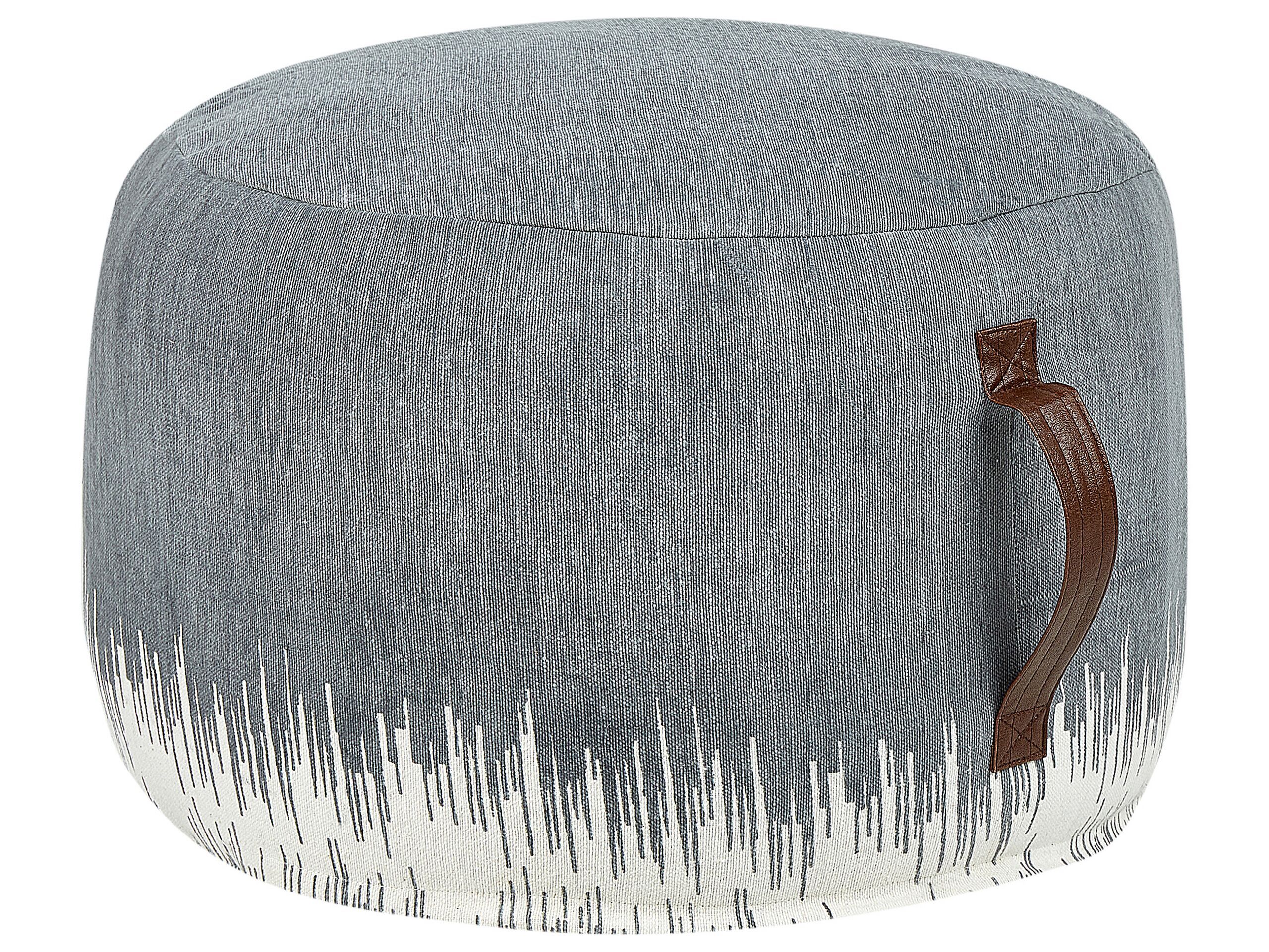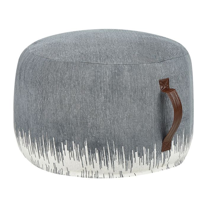Experience comfort and style with unique pouffe. Crafted by hand with care, this versatile piece features a removable cover for easy maintenance. The soft, natural feel of cotton adds a touch of warmth to any space. Its practical handle ensures effortless mobility, making it a perfect companion for your relaxation needs. Elevate your home décor with this cosy and functional accessory, a harmonious blend of craftsmanship and comfort. Details: Color: Blue, White. Main material: Cotton. Material Composition: 100% Cotton Weight: 6 Assembly: Does Not Require Assembly Weight Capacity: 100