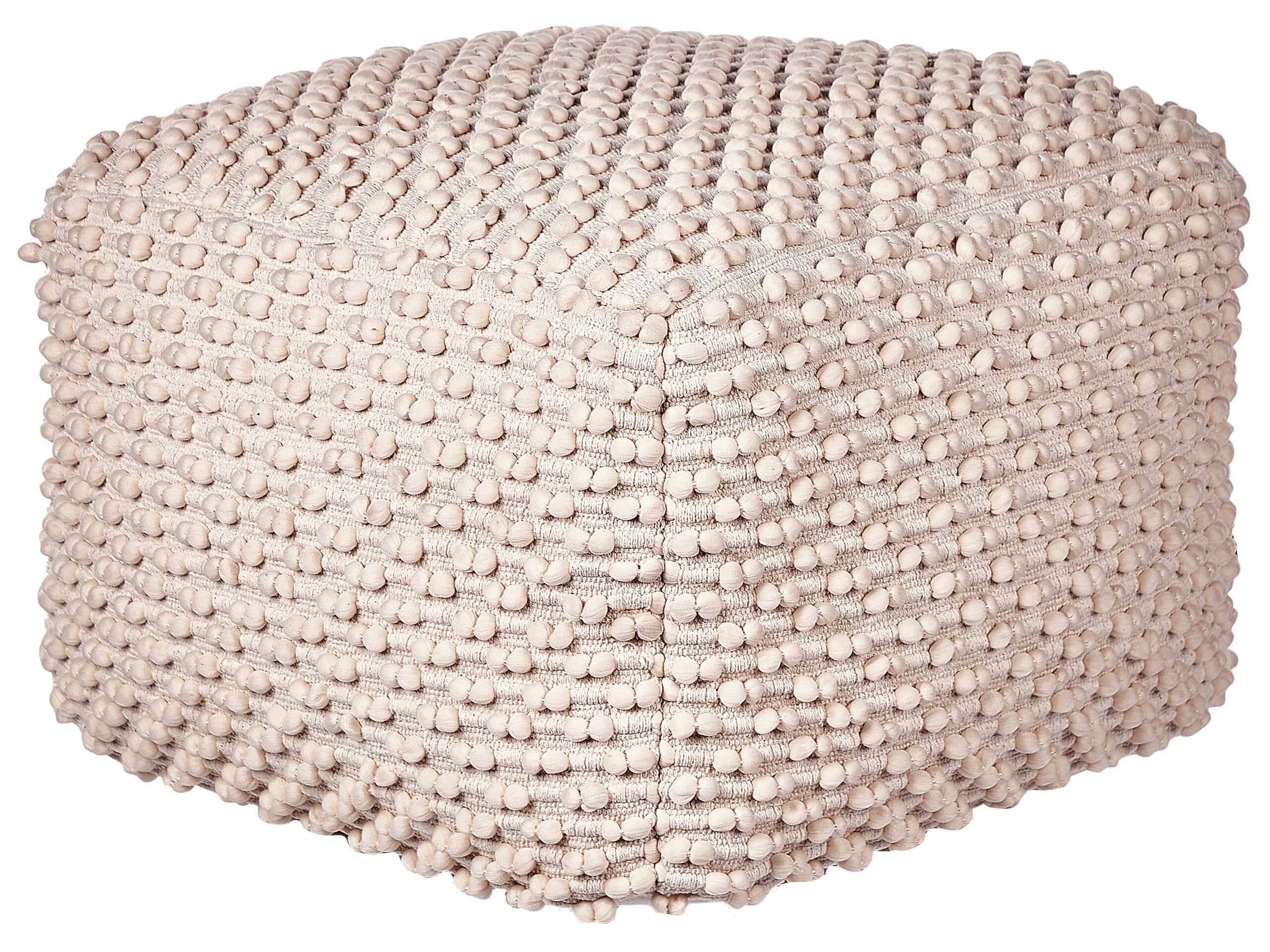 Introducing a versatile addition to your home, whether you need an accent piece for a living room or bedroom. This lightweight pouffe, crafted from high-quality cotton, brings a boho-inspired charm to any space. With its neutral colour and intricate handwoven details, it effortlessly blends into modern and Scandinavian-styled interiors. Whether used as extra seating or a convenient footrest, its adaptability suits various needs, enhancing your living space with both functionality and character. Details: Color: Beige. Main material: Cotton. Additional material: Polyester. Material Composition: 65% Cotton, 35% Polyester Weight: 2.5 Assembly: Does Not Require Assembly Weight Capacity: 110