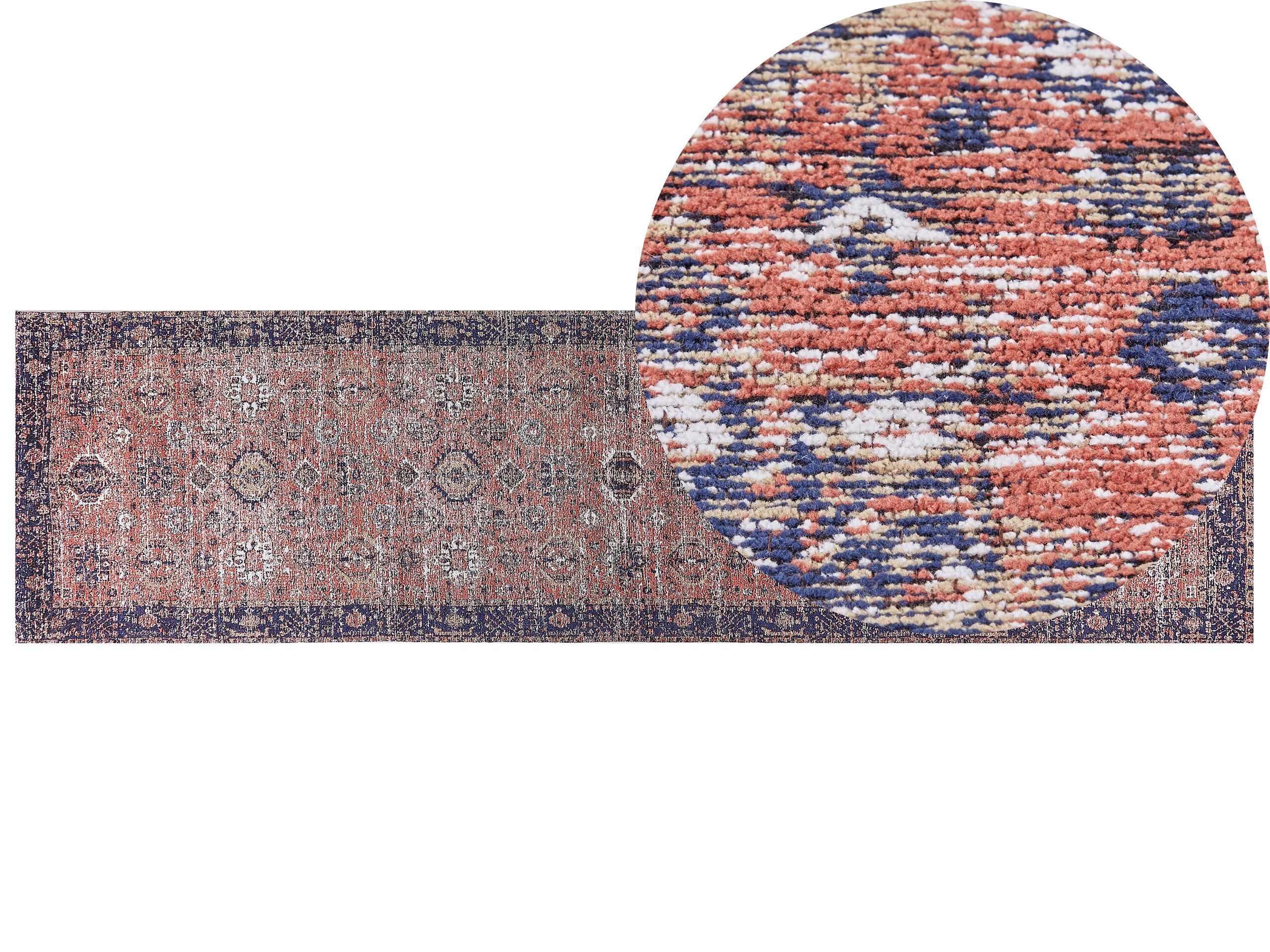 With this long, rectangular rug, you'll be able to refresh your hallway and add an oriental vibe to it. The piece is made out of cotton and polyester, so it's very durable and doesn't require daily maintenance to last for many years, while also being soft and pleasant to touch. It features a distressed pattern, so it will definitely draw the attention of all your houseguests. Details: Color: Blue, Red. Main material: Cotton. Additional material: Polyester. Material Composition: 70% Cotton, 30% Polyester Weight: 6.4 Assembly: Does Not Require Assembly