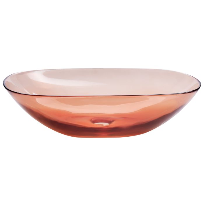 The wash basin is a fantastic addition to any contemporary bathroom, boasting a rounded shape and a semi-transparent design. Its standout feature is a splash of colour that highlights the basin, making it a captivating centrepiece. Crafted from solid surface, it not only exudes a modern aesthetic, but also promises exceptional durability. Additionally, it comes with a convenient click-clack drainer, ensuring effortless cleaning. Details: Color: Transparent, Red. Main material: Solid Surface. Additional material: Copper. Weight: 3 Assembly: Requires Installation