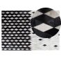 With a geometric pattern, this rug looks fantastic when set against modern interiors, especially those created with minimalist tendencies. The patchwork is created from multiple pieces of leather in tones of grey and white, a hand-crafted product of the highest quality. With a felt underlay, this rug protects your flooring while looking incredibly chic. Details: Color: Black, White, Beige. Main material: Cowhide Leather. Material Composition: 100% Real Leather Weight: 5 Assembly: Does Not Require Assembly