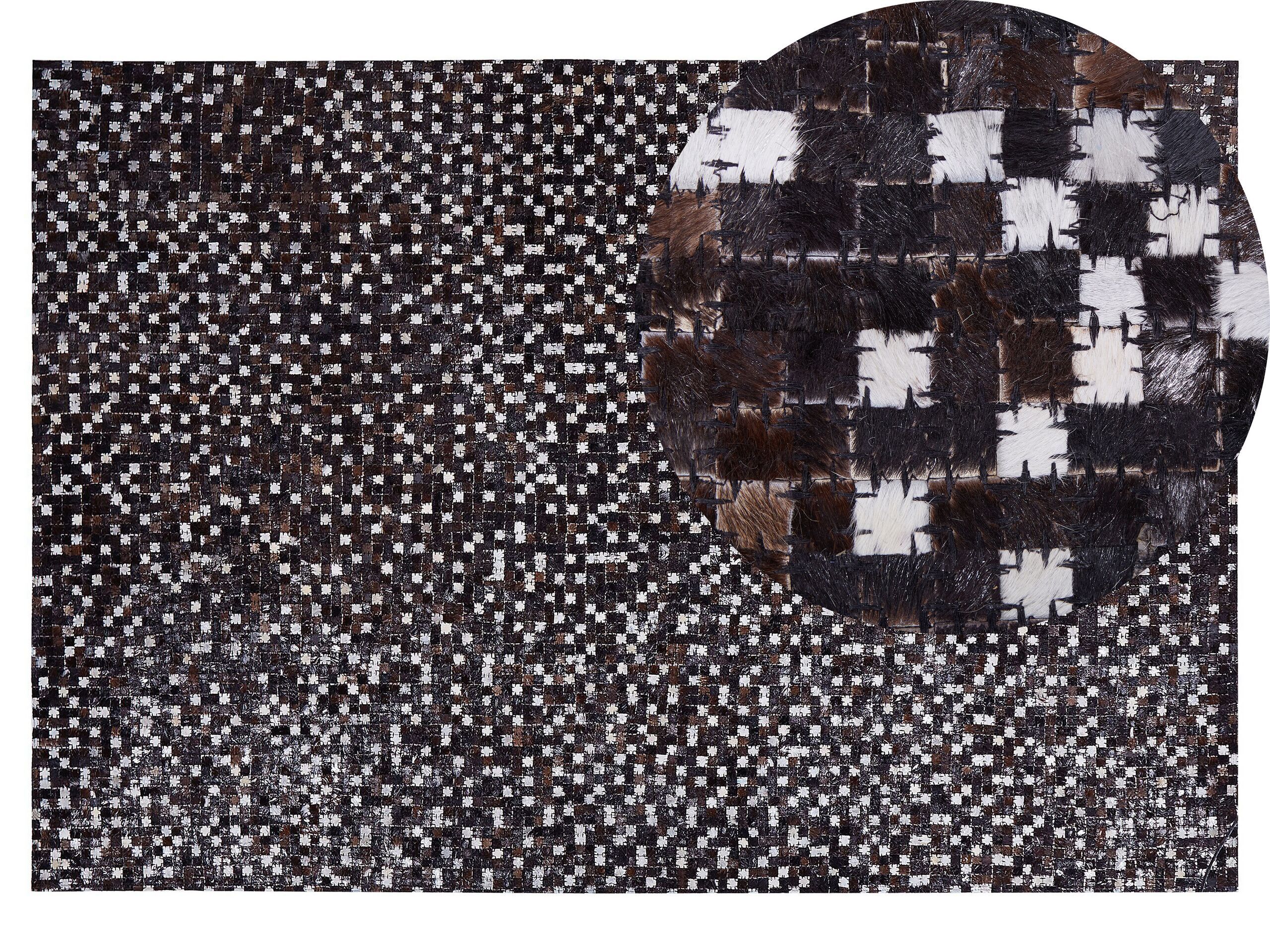 Add some shine to your living area or a home office by decorating it with this patchwork area rug in neutral shades of brown and beige. Finished with silver thread, it enlightens any space and underlines the colour of both light and dark wooden floors. Made out of durable and easy to maintain cowhide leather, it looks well in rustic and boho-inspired interiors. Details: Color: Brown, Black, Silver, Beige. Main material: Cowhide Leather. Material Composition: 100% Real Leather Weight: 7 Assembly: Does Not Require Assembly