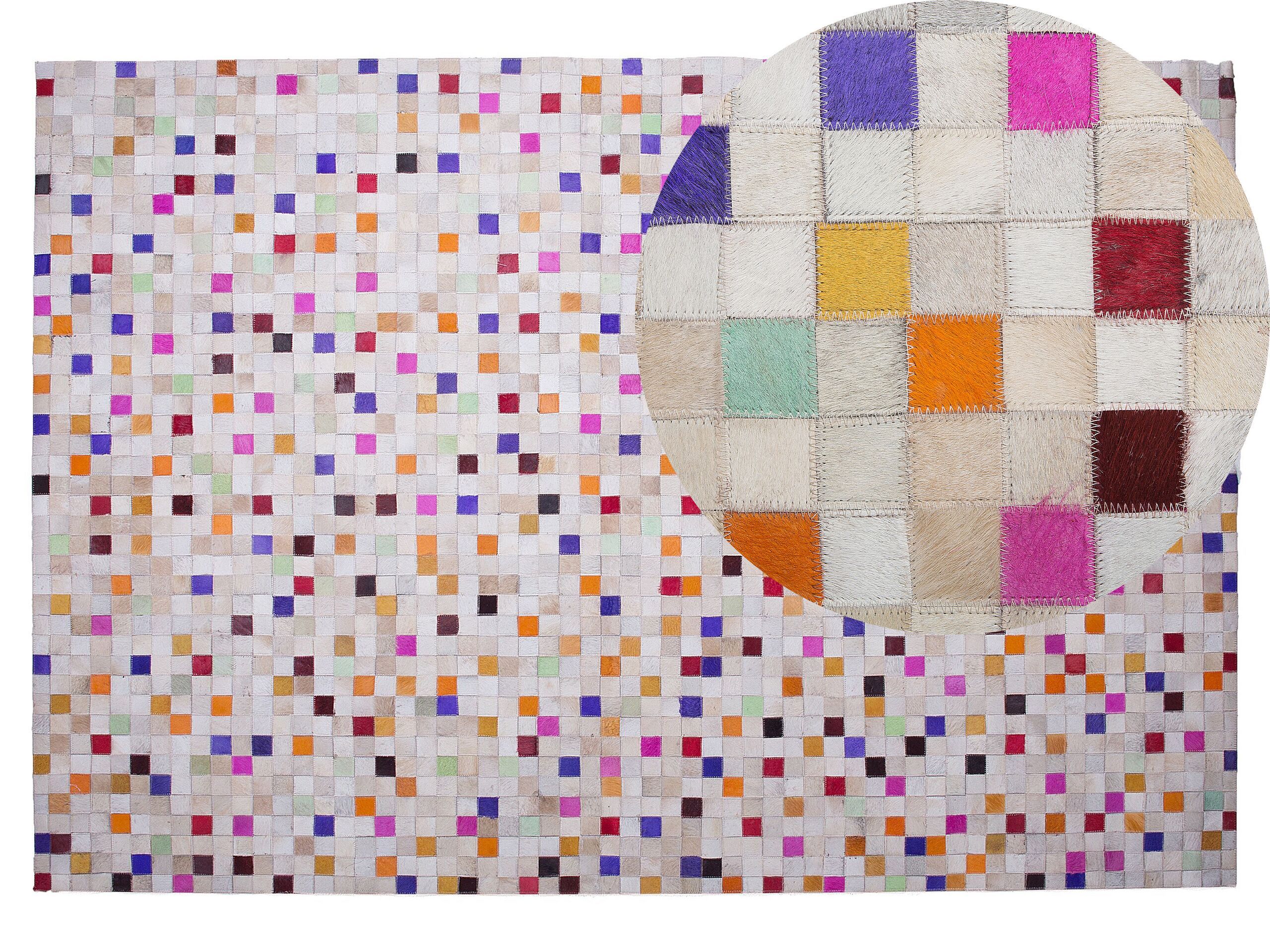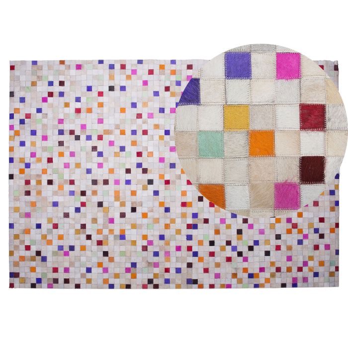 An elegant and luxurious rug that would suit any room, this visually appealing piece is made from small leather squares, giving a beautiful patchwork design. The colourful hues would enlighten any traditional or modern decor. The rug has a felt underlay for effective floor protection, as well as the construction longevity. Details: Color: Multicolour, Purple, Beige, Pink. Main material: Cowhide Leather. Material Composition: 100% Real Leather Weight: 4 Assembly: Does Not Require Assembly