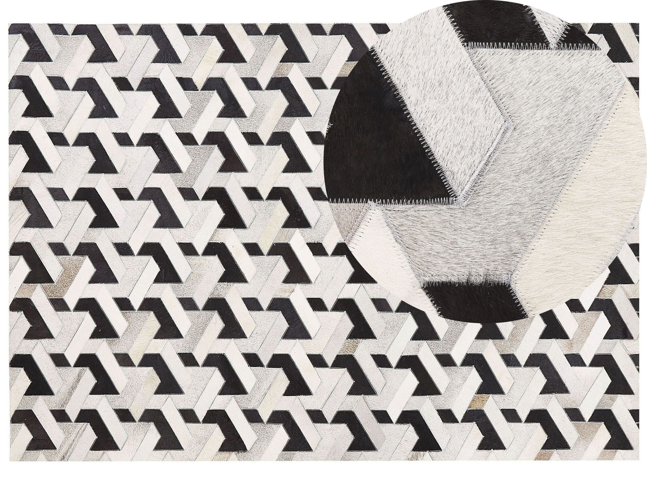 Change your way of thinking about the patchwork patterns - this leather rug composed of many black and grey pieces that form a geometrical pattern is a modern masterpiece. The patches, meticulously stitched together, create a 3D effect that decorates every living area or an office. The rug will look particularly well in industrial and retro-inspired interiors. Details: Color: Grey, Black. Main material: Cowhide Leather. Material Composition: 100% Real Leather Weight: 8 Assembly: Does Not Require Assembly