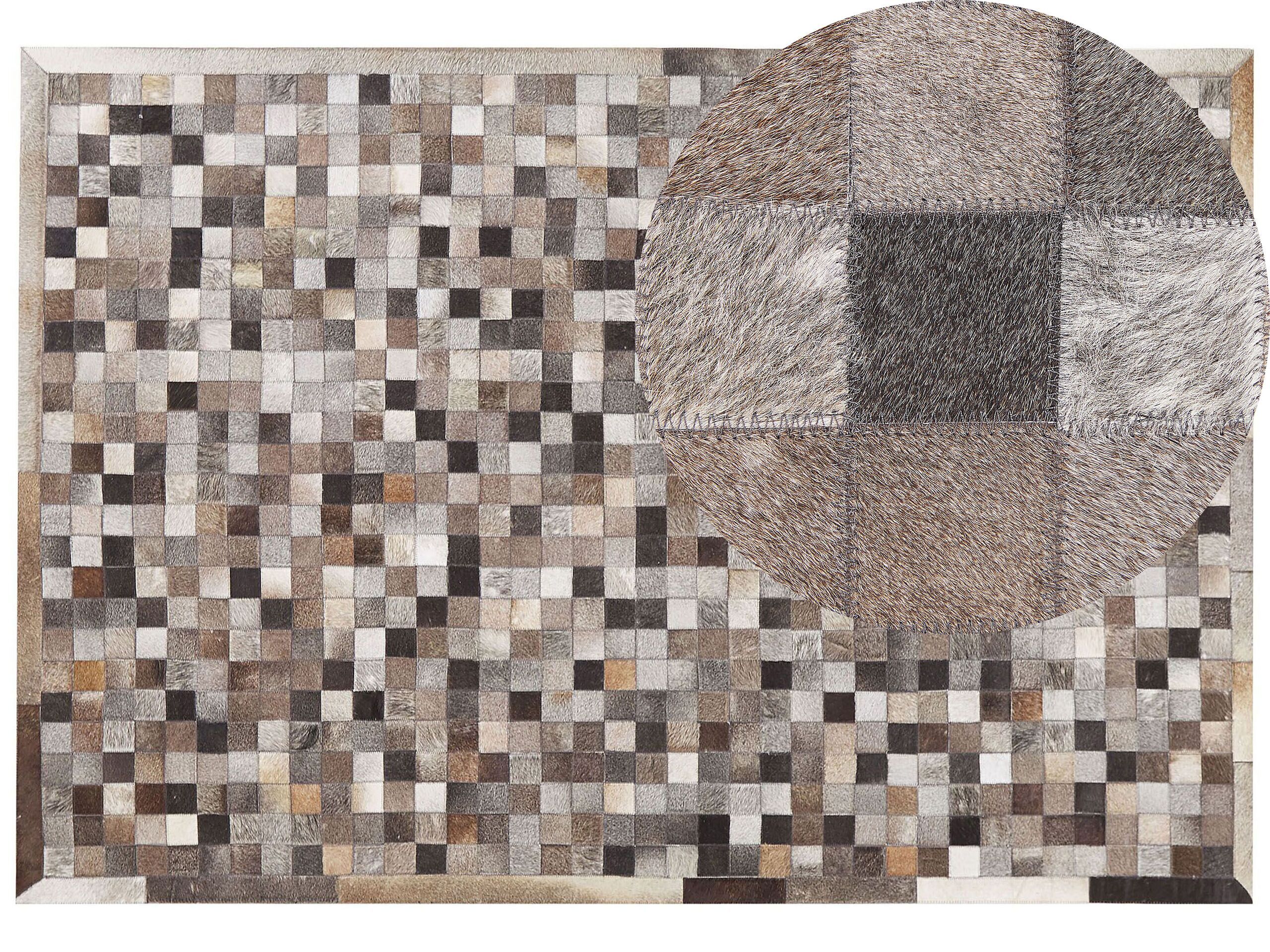 If you wish to have your living room fully decorated in an elevated style, choose a patchwork leather rug. Countless elements in different shades of grey and brown are stitched together to create an elegant piece. It is a perfect accessory to place in a rustic common room or an industrial bedroom. The structure of the rug is pleasant to the touch and relatively easy to maintain thanks to the low pile. Details: Color: Grey, Brown, Beige. Main material: Cowhide Leather. Material Composition: 100% Real Leather Weight: 4 Assembly: Does Not Require Assembly