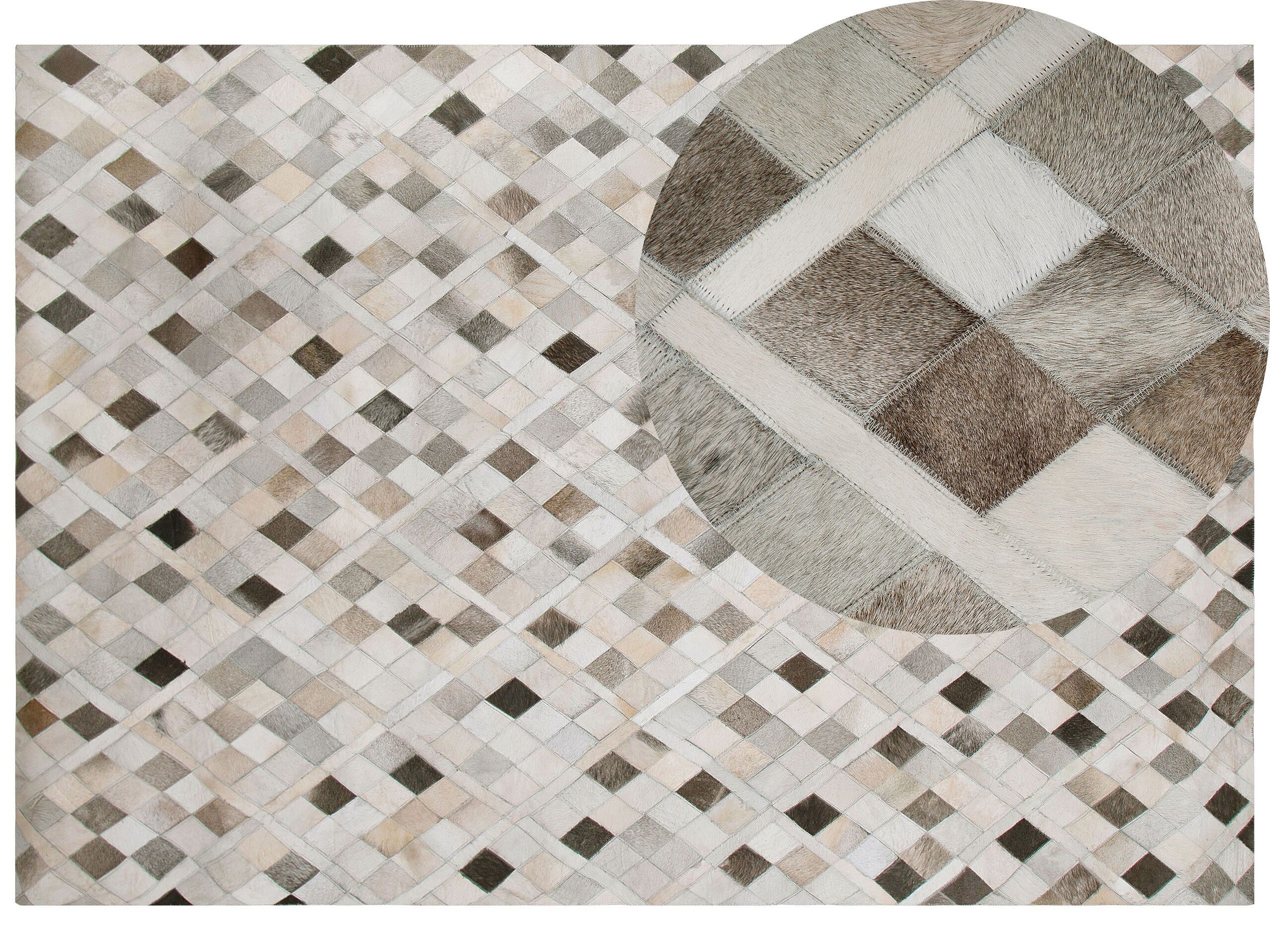 Update the looks of your living space with this stylish, modern area rug. Made entirely out of genuine leather, it is durable and requires no special maintenance to last for many, many years, keeping its original look and colour. Due to the material used, it is of exceptional quality, being very pleasant to the touch. Thanks to its design, it will look great in contemporary areas, but it can also be placed in more vintage, rustic-inspired interiors. Details: Color: Grey, Black, Beige. Main material: Cowhide Leather. Material Composition: 100% Real Leather Weight: 6 Assembly: Does Not Require Assembly