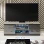 The CREST TV Unit brings elegance and functionality to your living room, serving as a sleek and versatile addition to your home. Measuring 120cm (W) x 40cm (H) x 38cm (D), this compact yet stylish piece fits seamlessly into contemporary interiors while providing smart storage solutions to enhance your entertainment setup. The unit features two push-to-open glossy doors that conceal hidden compartments, offering ample space for storing remotes, gaming accessories, or other essentials to keep your space tidy and organized. Above, two external compartments provide the perfect display area for media devices or decorative items, while a glass shelf illuminated by LED lighting included in the set adds a refined and luxurious touch to your setup. Crafted from high-quality 16mm chipboard and MDF, the CREST TV Unit is built for durability and includes easy cable access, ensuring that wires and cords remain neatly managed for a clean and organized look. Available in White & Gloss Doors, White & Grey Gloss Doors, Black & Gloss Doors, and Dark Grey & Gloss Doors, the CREST TV Unit is the ideal combination of modern design and practicality for the contemporary home.