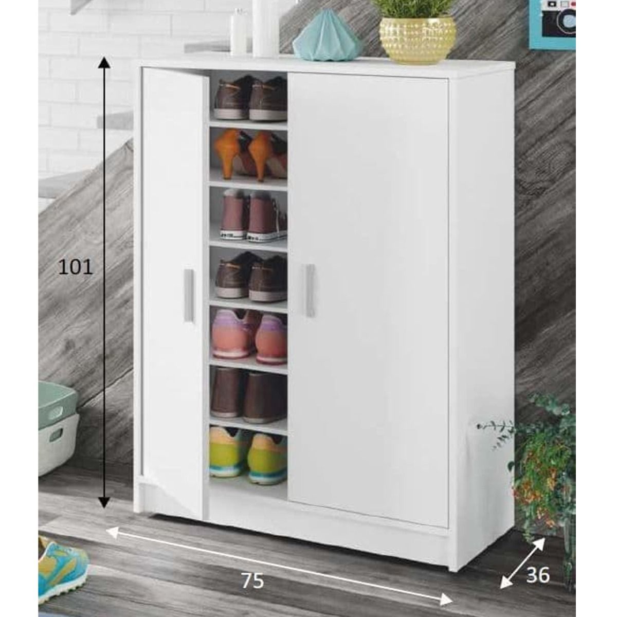 Crowther 2 Door Shoe Large Cabinet with 6 Shelves - Grey and White