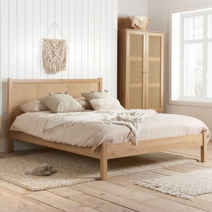 Croxley Large Rattan Headboard Design Oak Bed - Kingsize 5ft