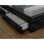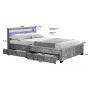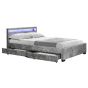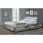 This is a fantastic contemporary, Double or King size 4 Drawer Storage Bed Frame with LED Headboard and mattress, if selected. and is available in Crushed Velvet Silver/Black or Faux Leather Black. Made from high quality UK spec fabric this beautiful bed frame has a high padded headboard with LED Headboard light and a low foot end.